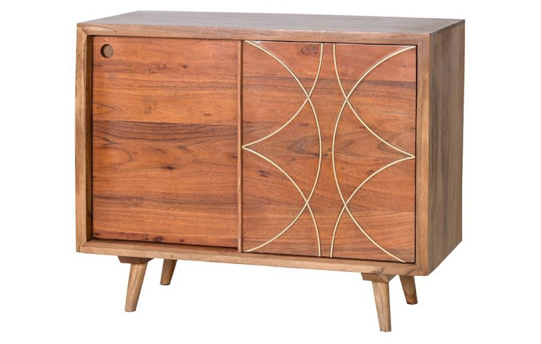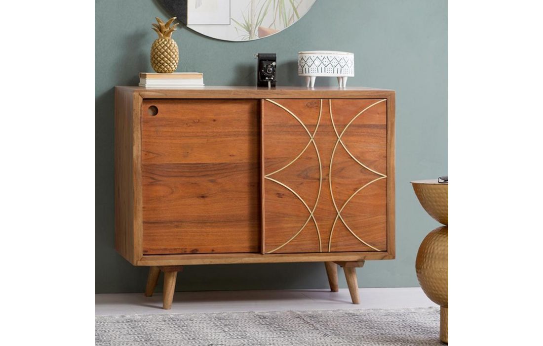 Consola para hall com estrutura em madeira de acácia com 2 portas.