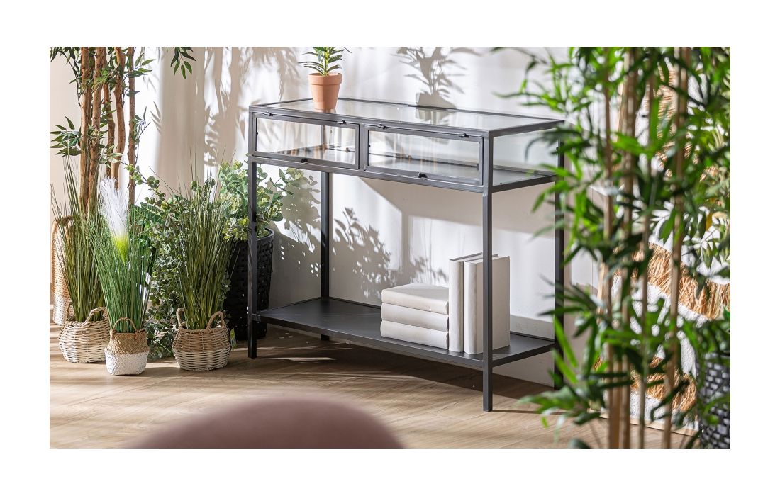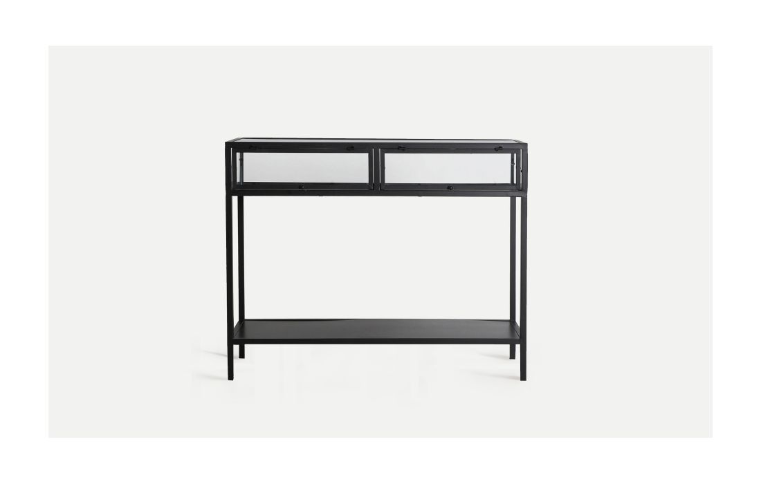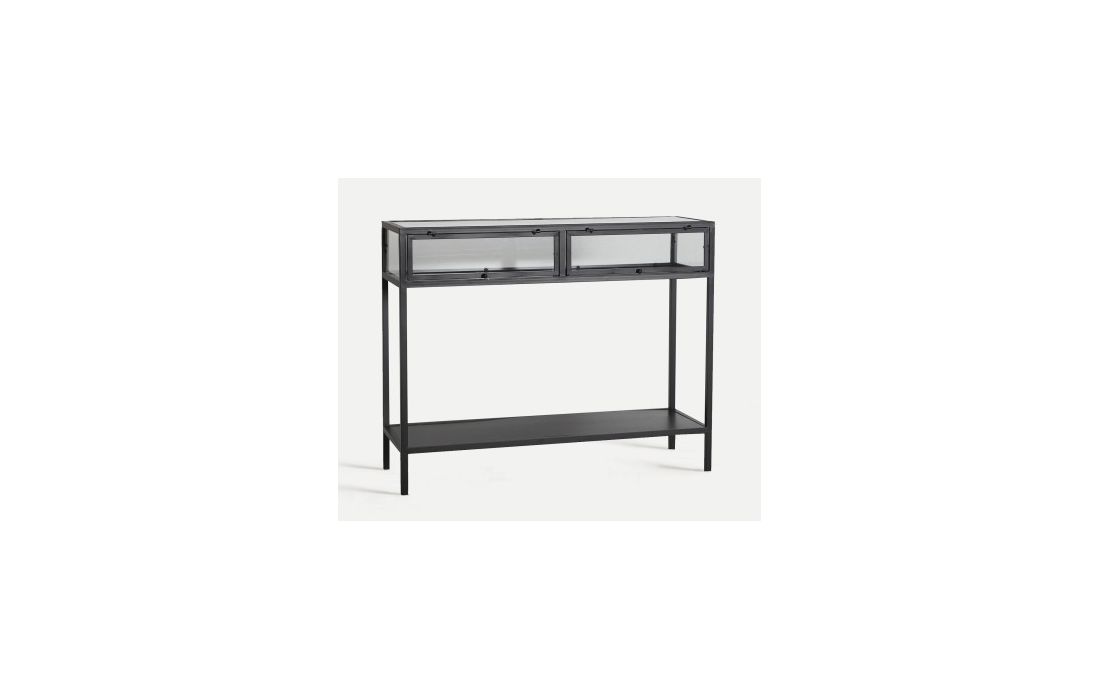 Consola em ferro preto e vidro com design moderno e sofisticadoDestinatário :