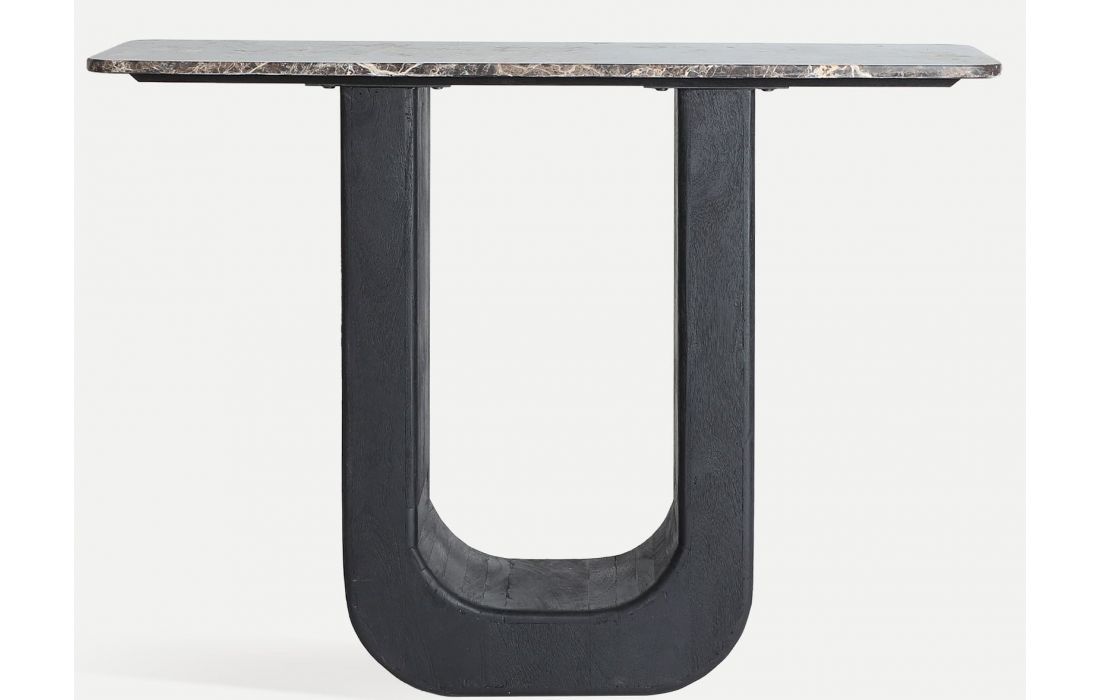 Geometria e matéria em perfeita harmonia. A CONSOLA LOOP combina a nobreza da madeira de mango com a elegância do mármore, criando uma estrutura em forma de arco que traz equilíbrio visual e modernidade.