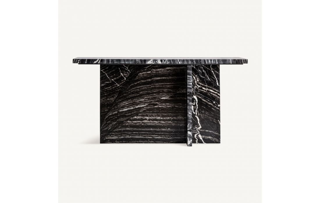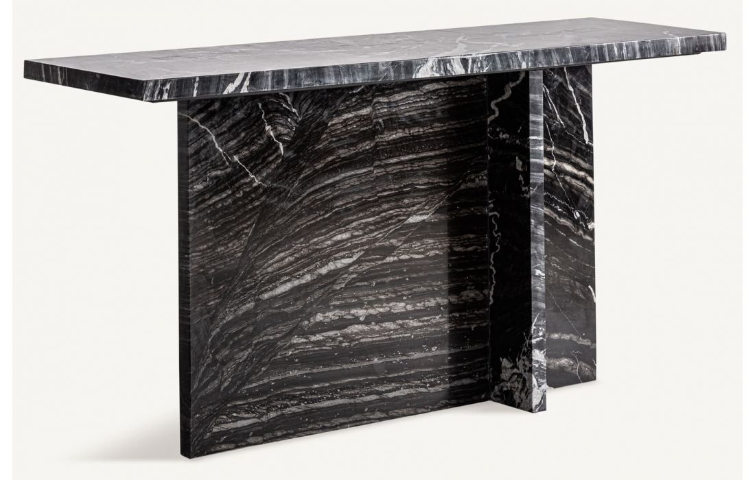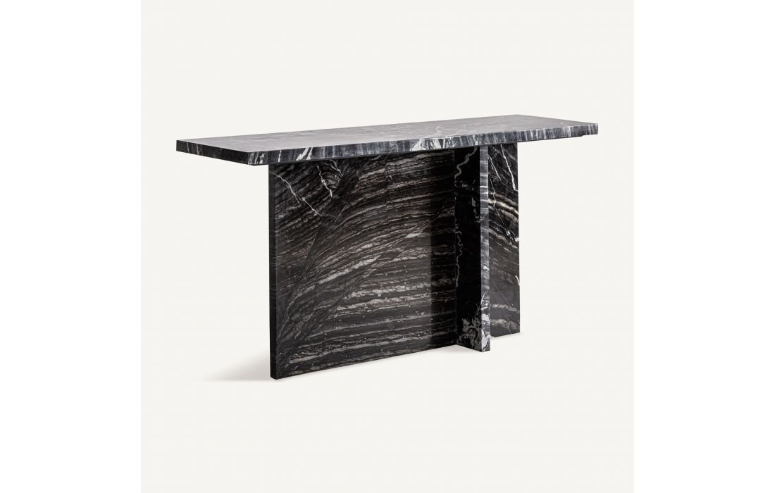 Esta consola em estilo contemporâneo, feita em mármore preto, é a peça ideal para qualquer entrada.