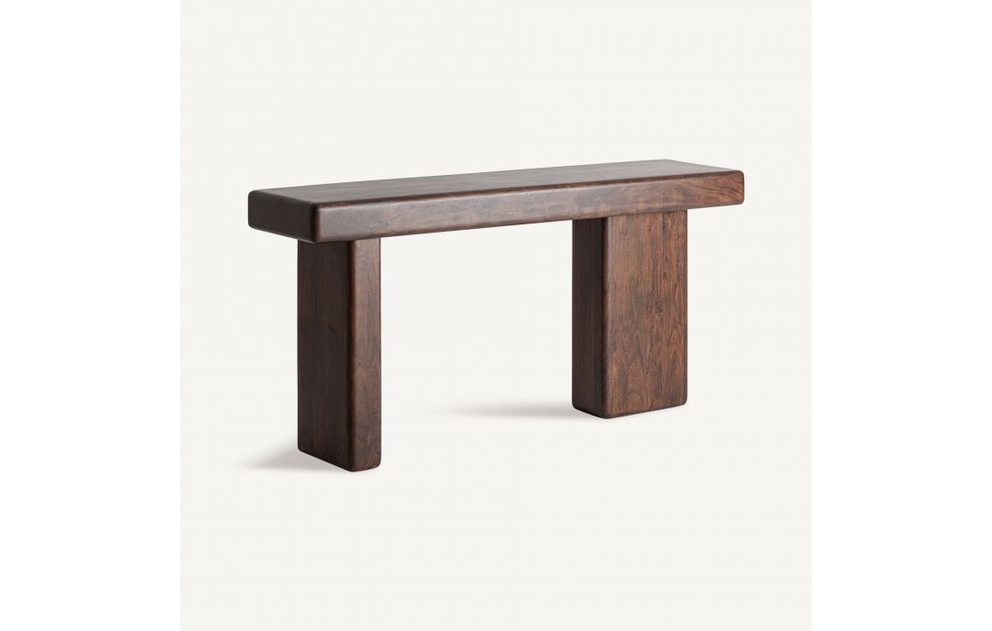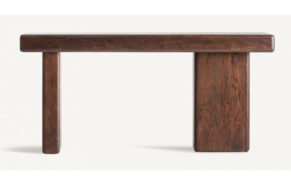Esta consola, feita de madeira de acácia, é uma peça funcional e sóbria, perfeita para entradas, áreas de passagem ou espaços de contrato que buscam equilíbrio entre estética e praticidade.
