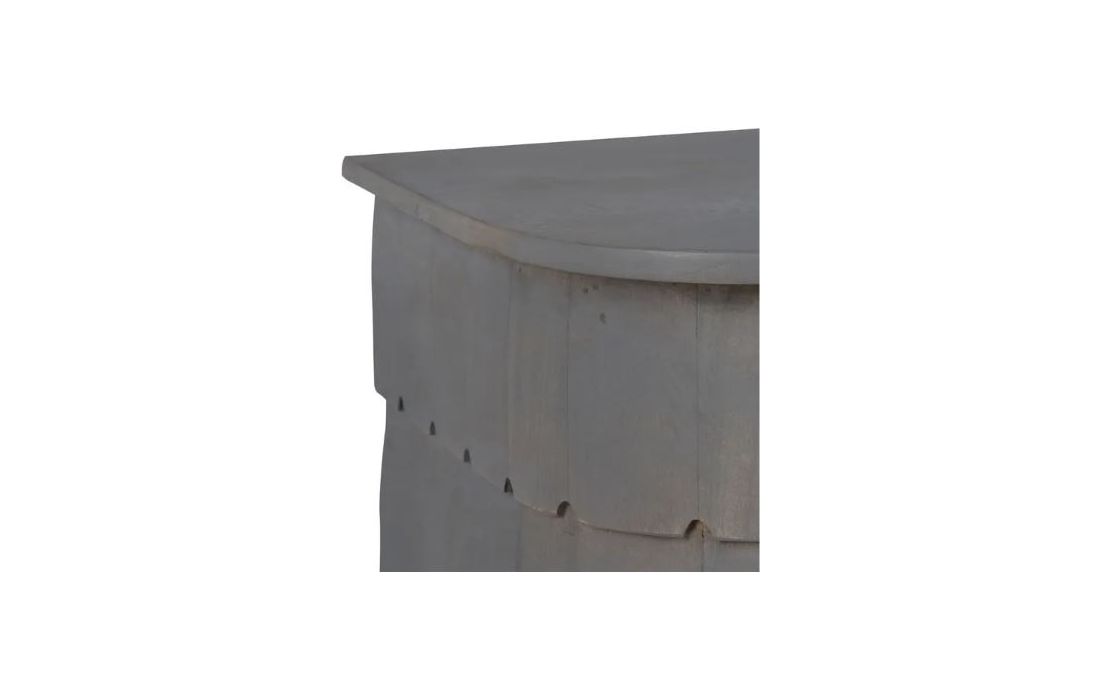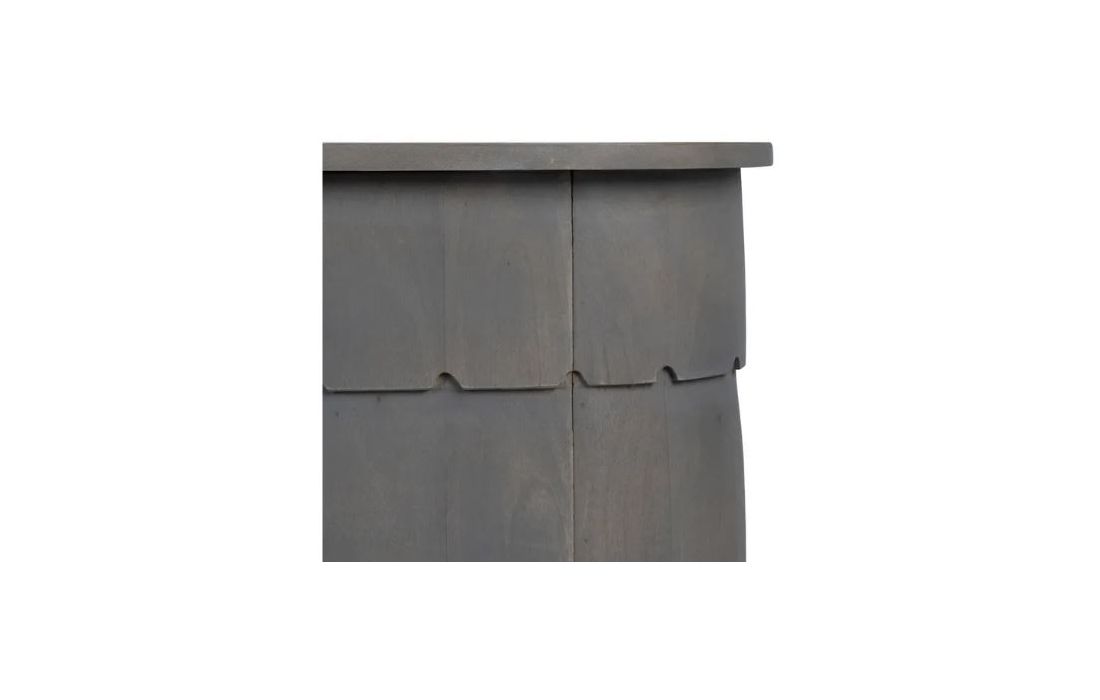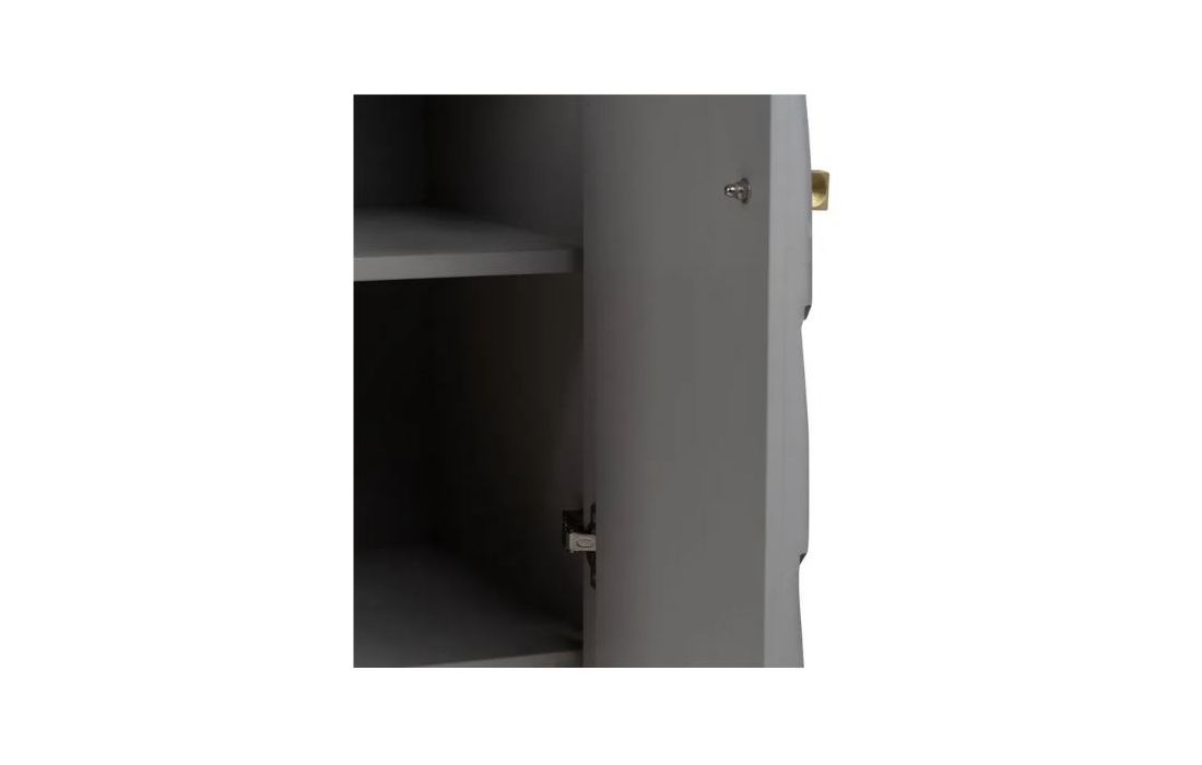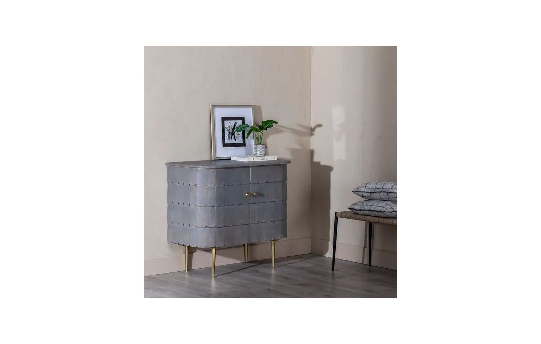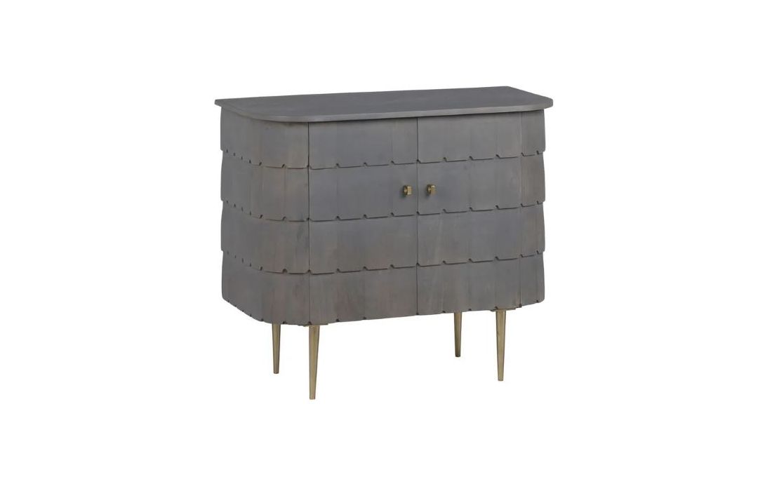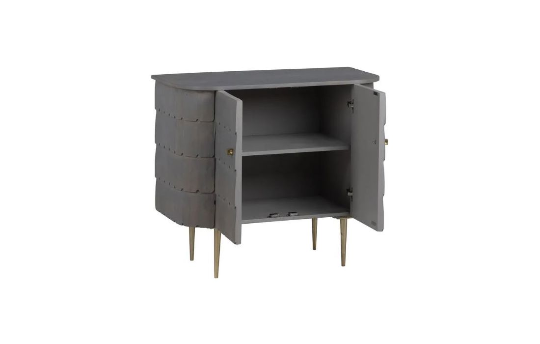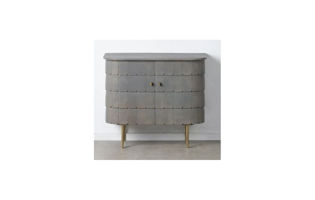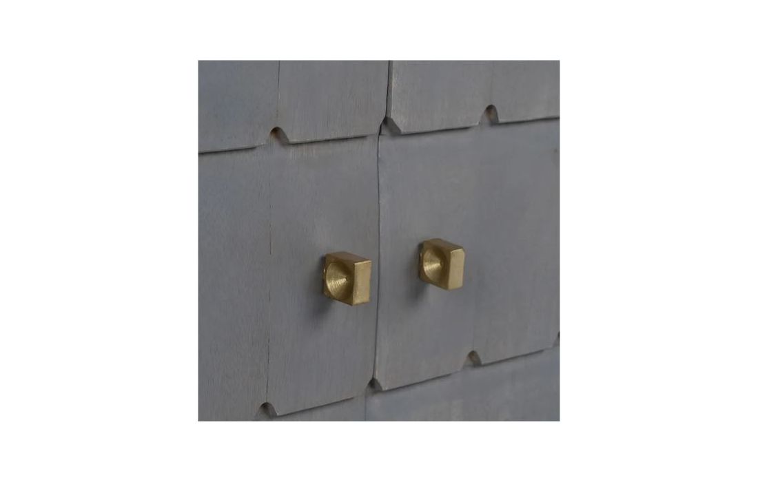Sapateira em madeira de Mango cinzenta com pés e puxadores em metal dourado.