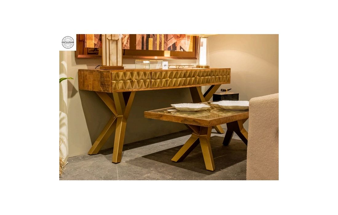 Consola em madeira de mangueira e metal