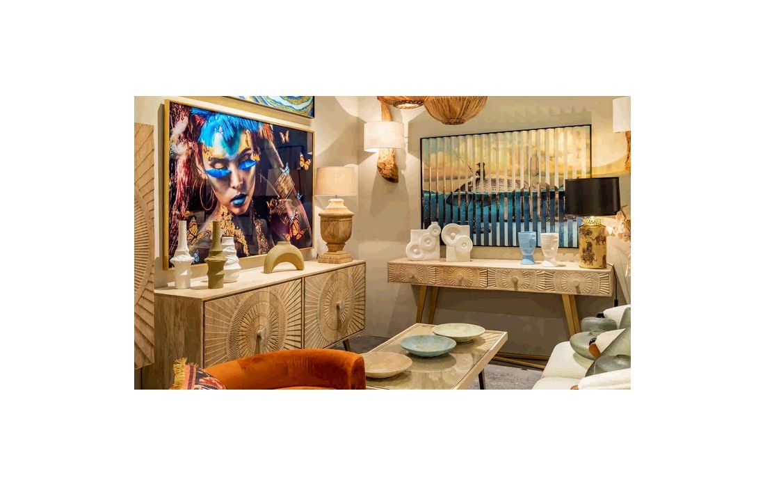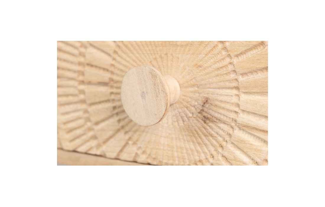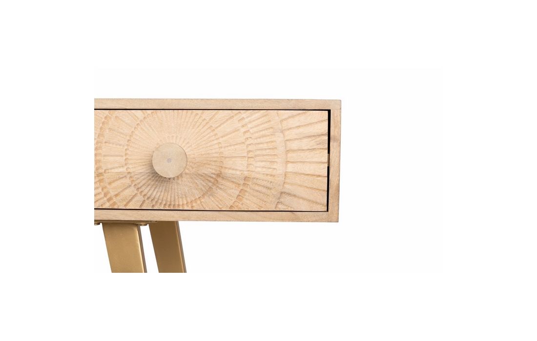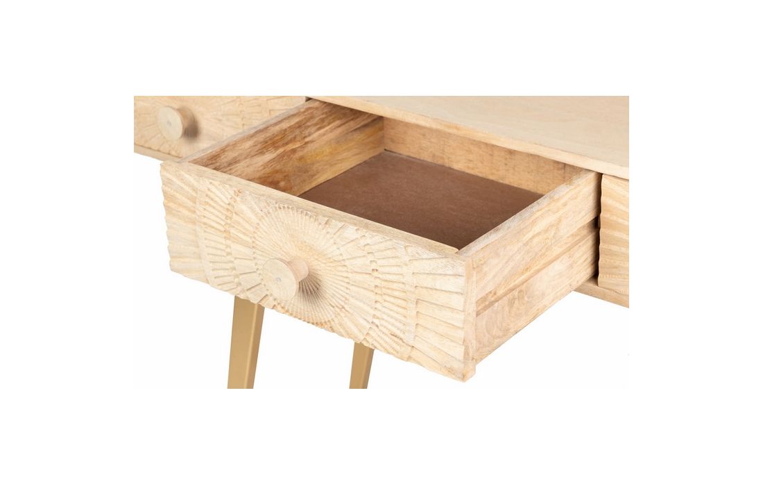 Consola em madeira de mangueira com 4 gavetas e pés em metal dourado.