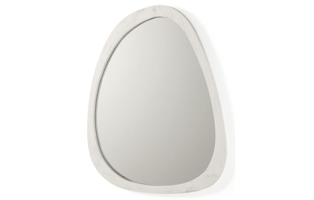 Espelho com moldura de madeira cor branca.