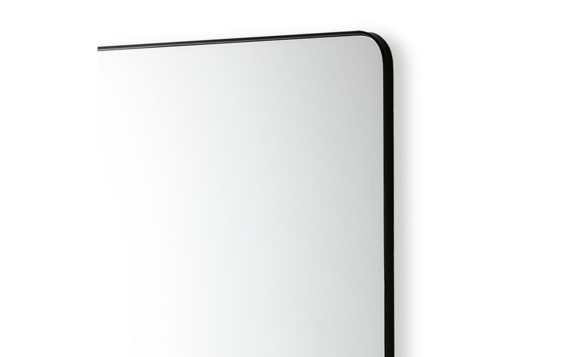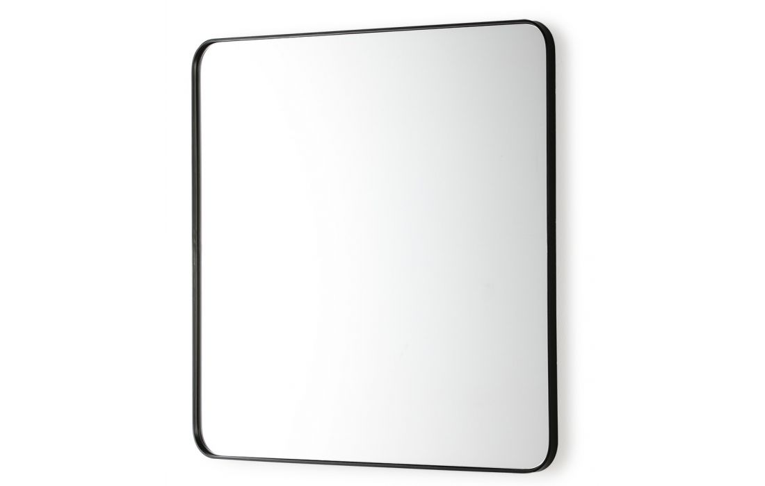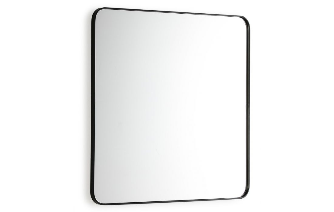 Espelho quadrado com moldura em metal preto.