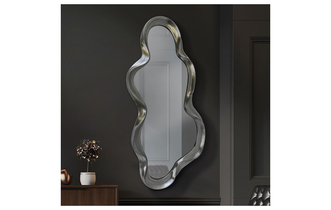 Espelho com moldura em poliuretano moldado com acabamento em folha de prata
