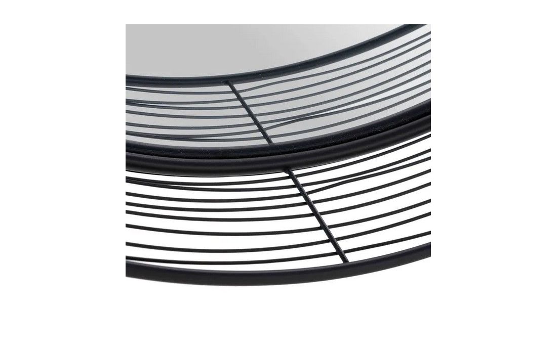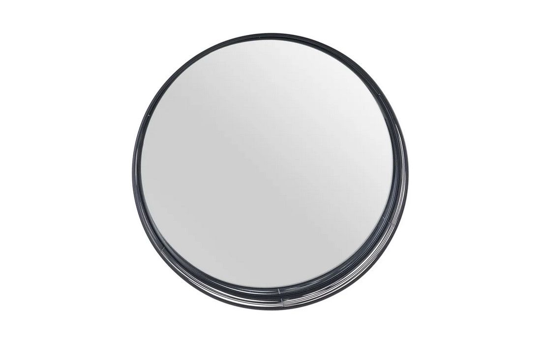 Espelho redondo com metal preto.