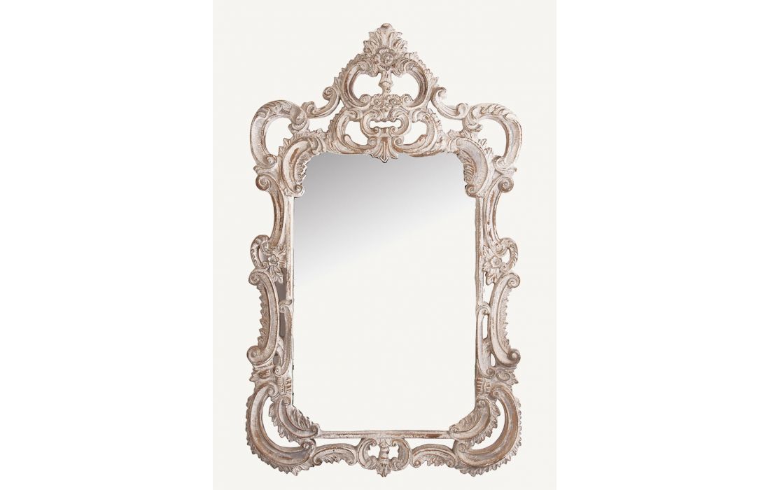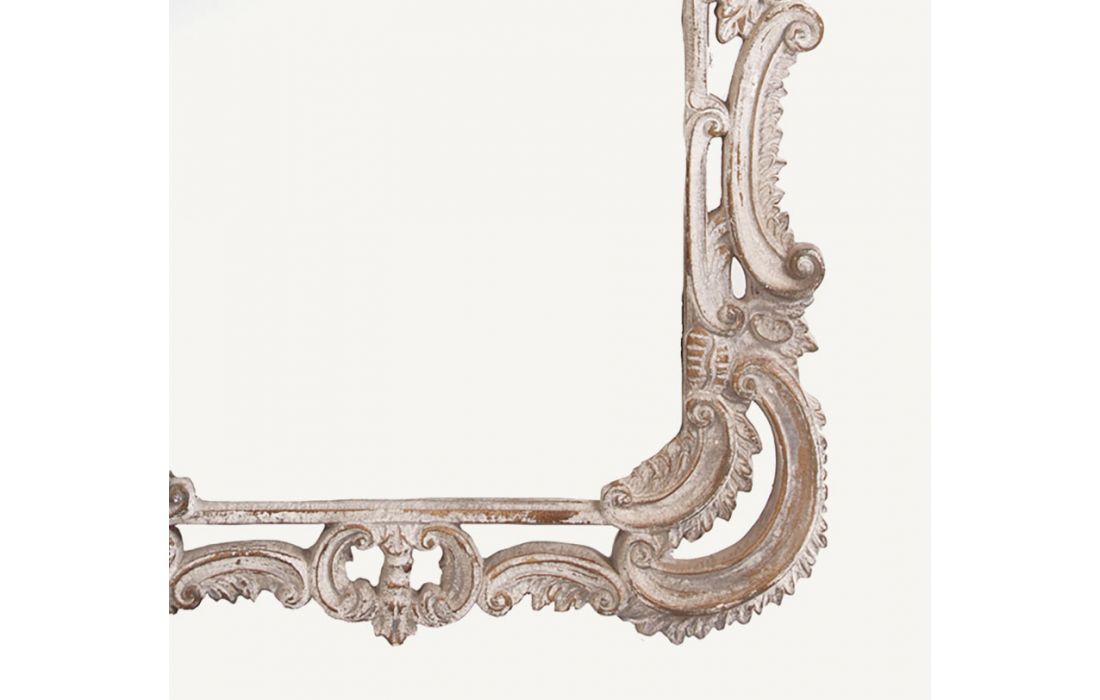 Espelho retangular com moldura em resina cor branco roto envelhecido