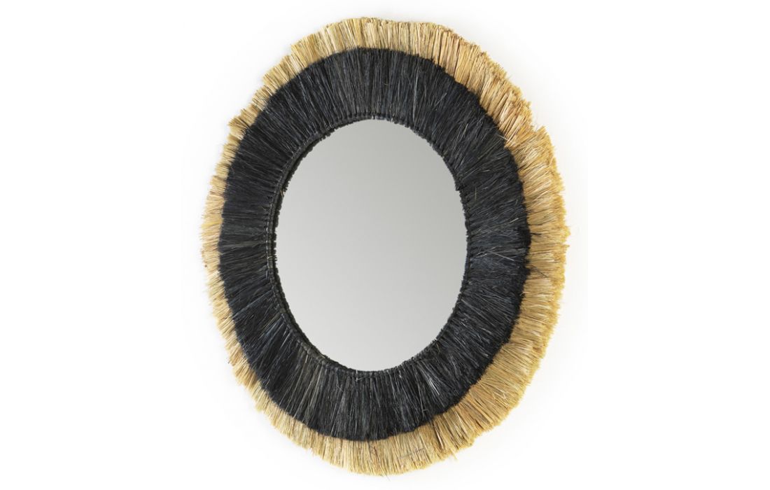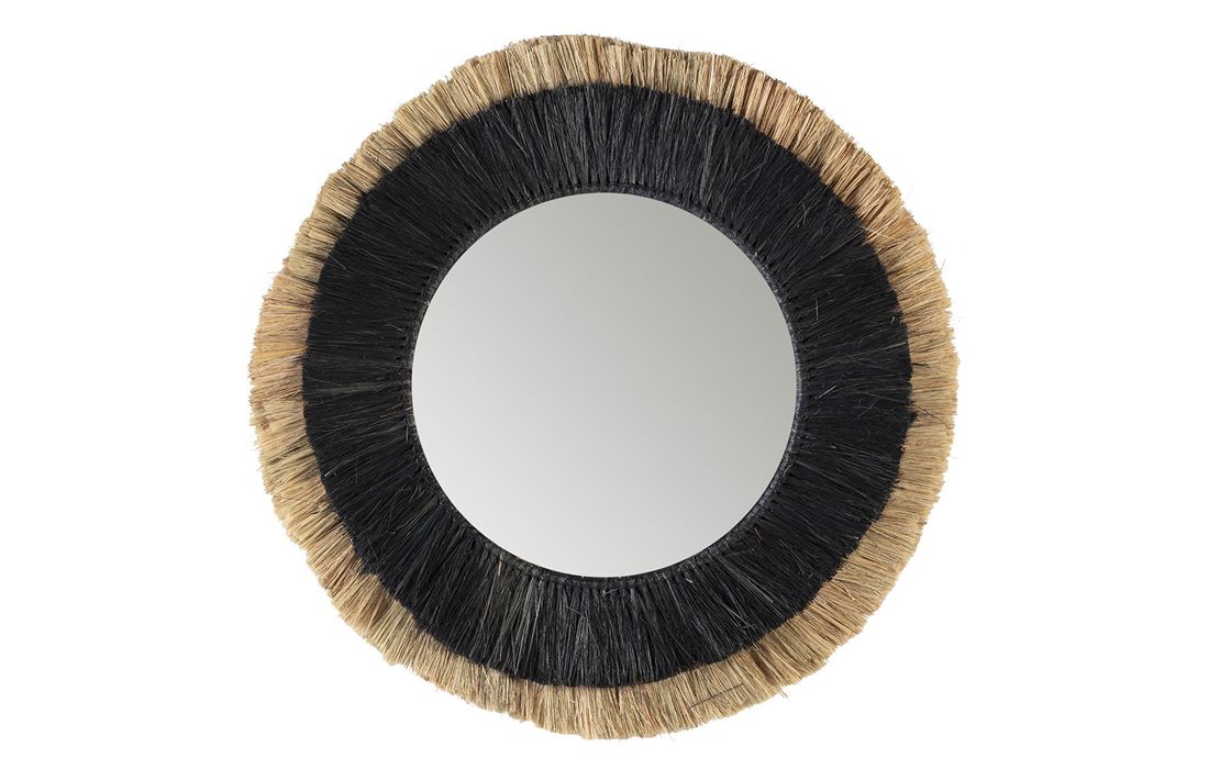 Espelho redondo com moldura feita de grama do mar cor preto/natural
