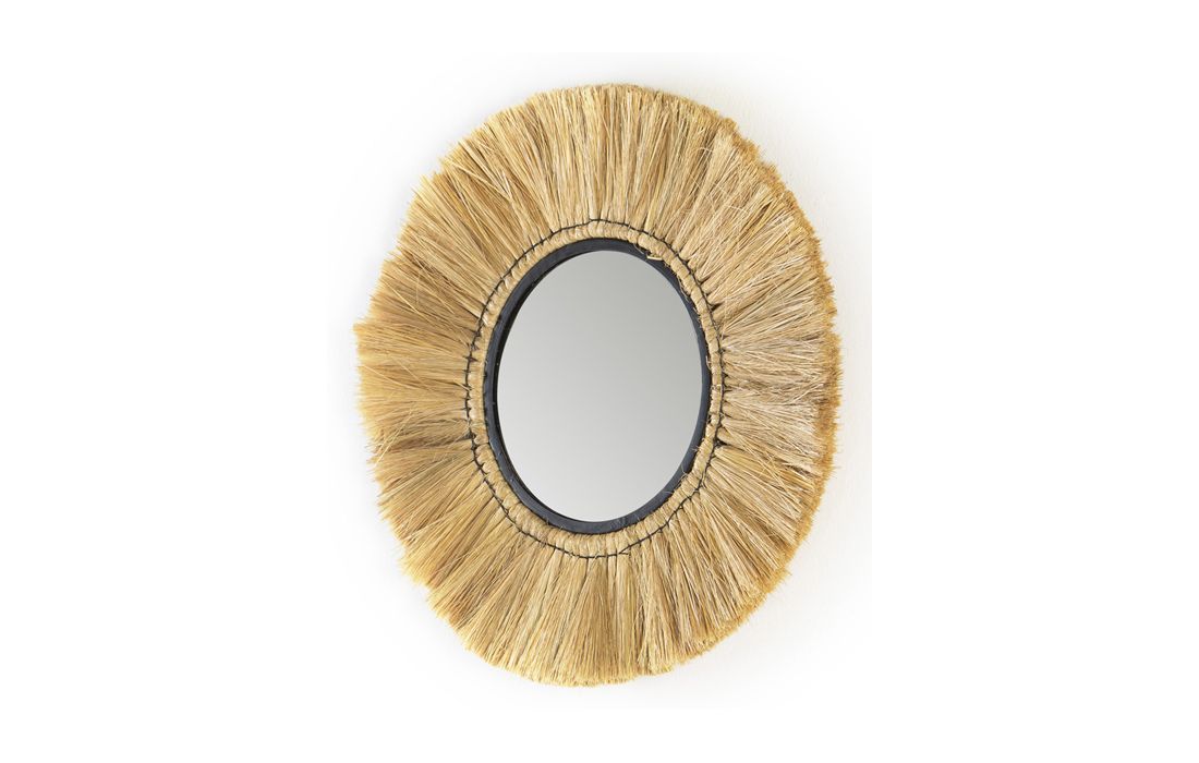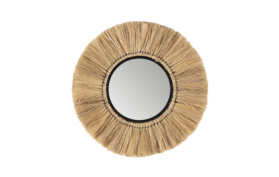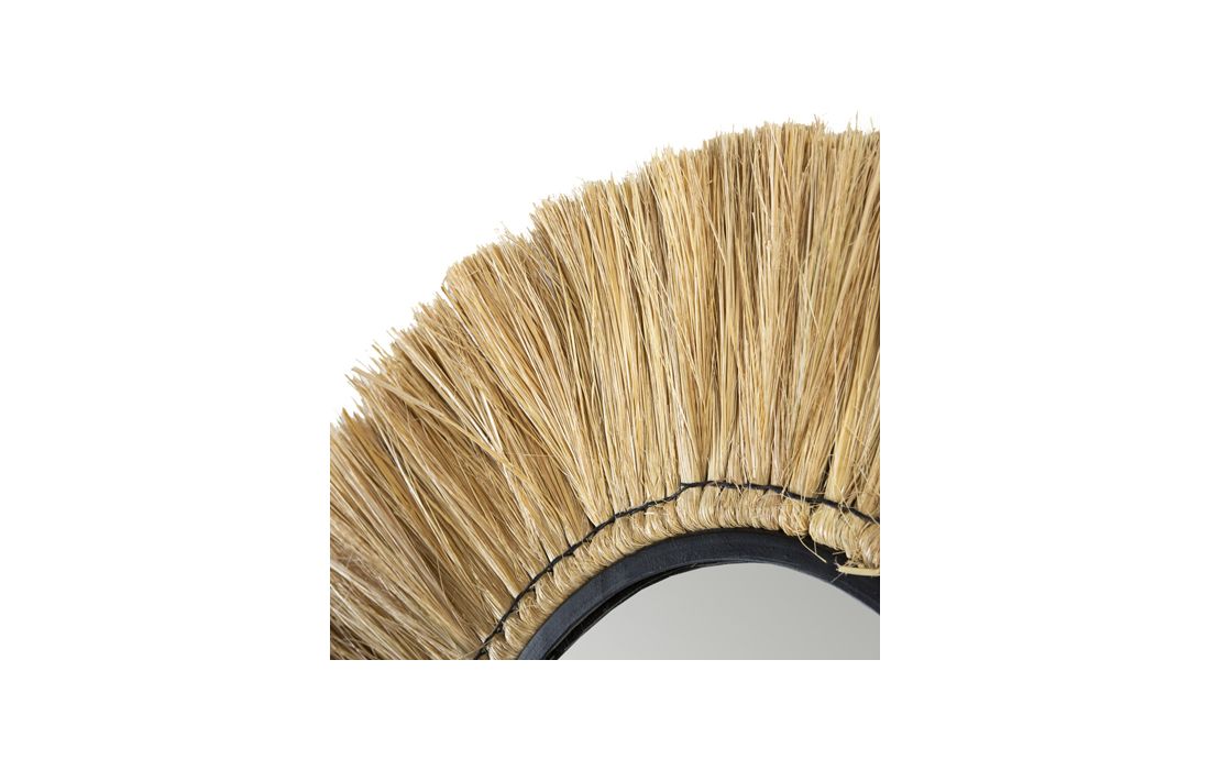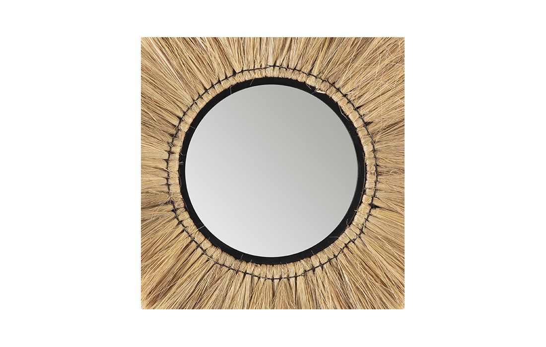 Espelho redondo com moldura feita de grama do mar cor natural/preto
