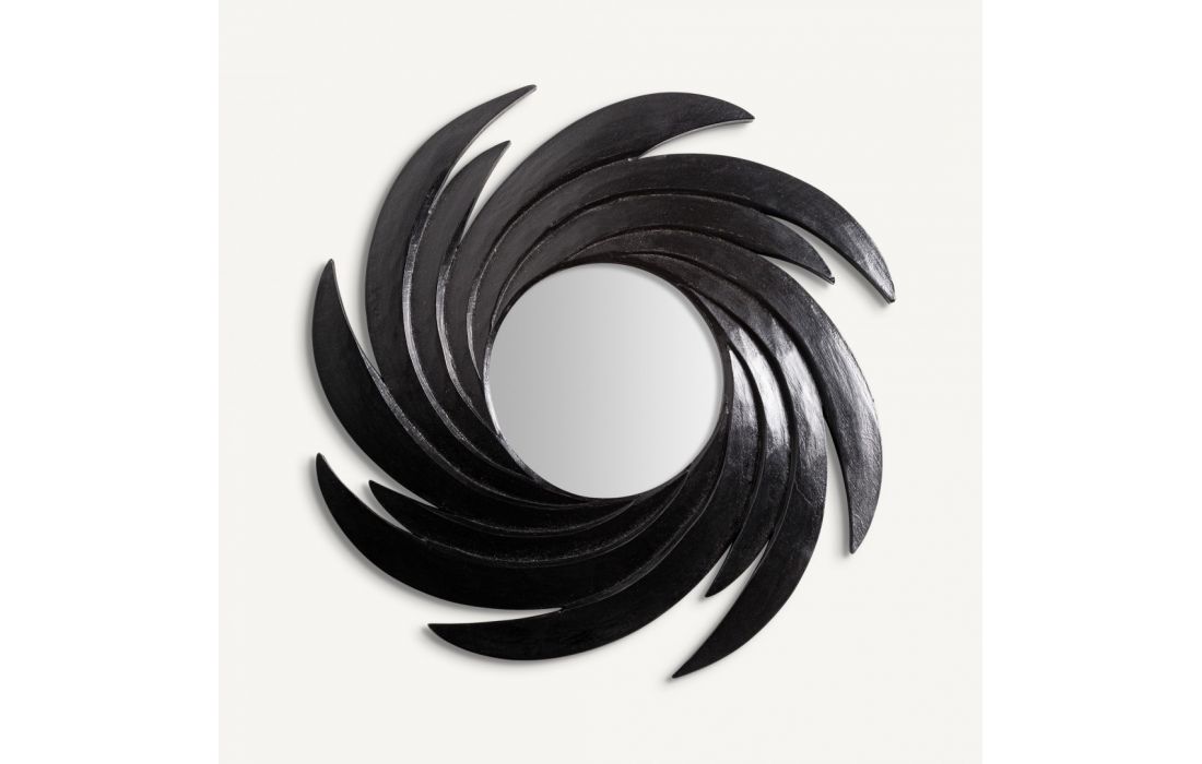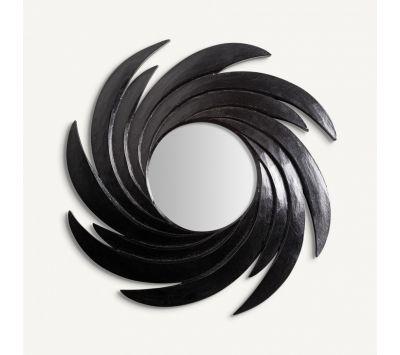 Espelho no estilo art déco feito em madeira de acácia e espelho na cor preta