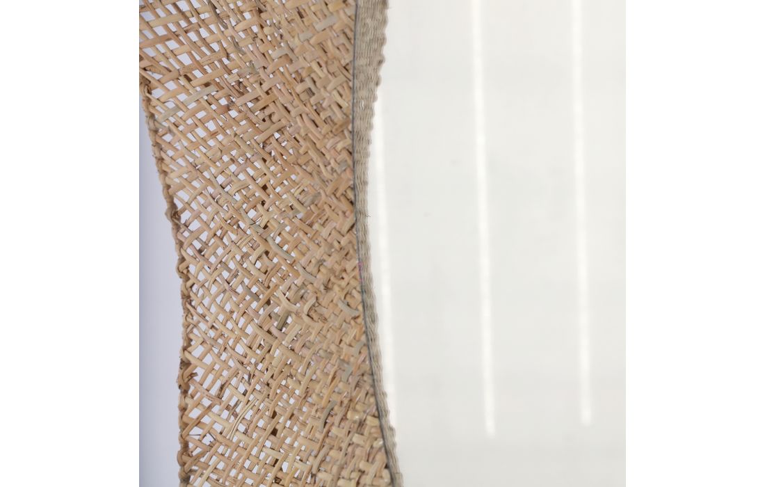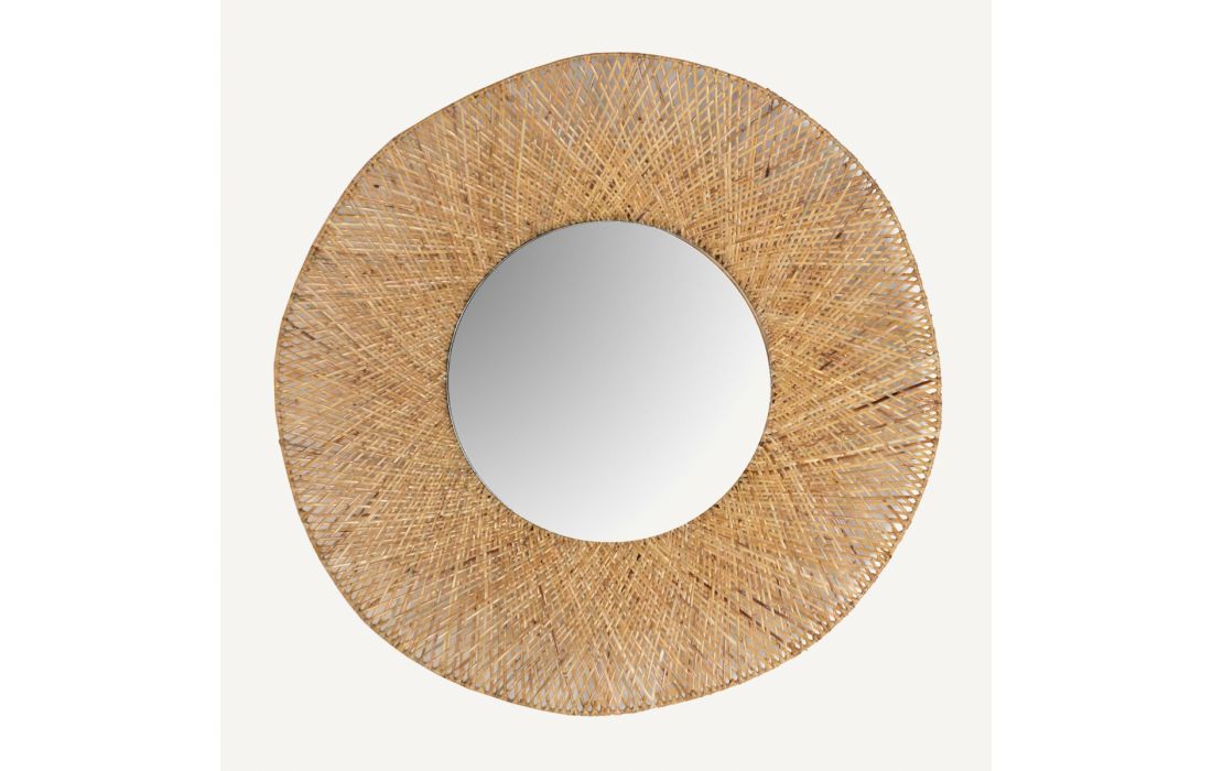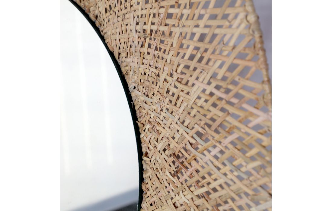Espelho redondo no estilo contemporâneo feito em vime, rattan e espelho na cor castanha