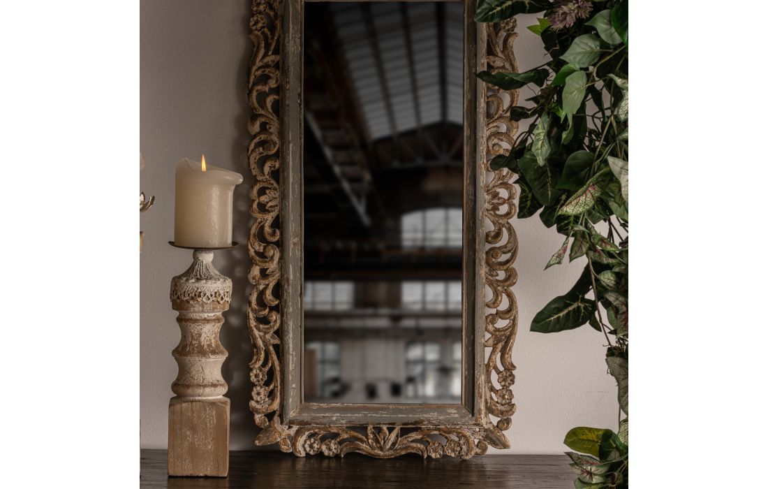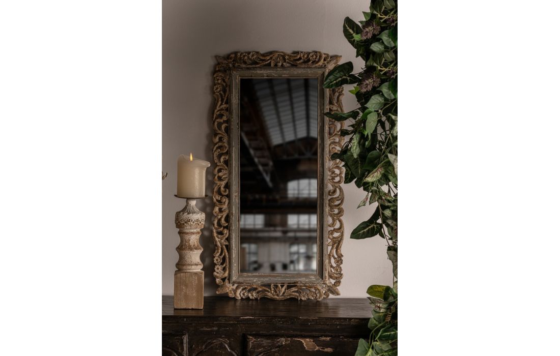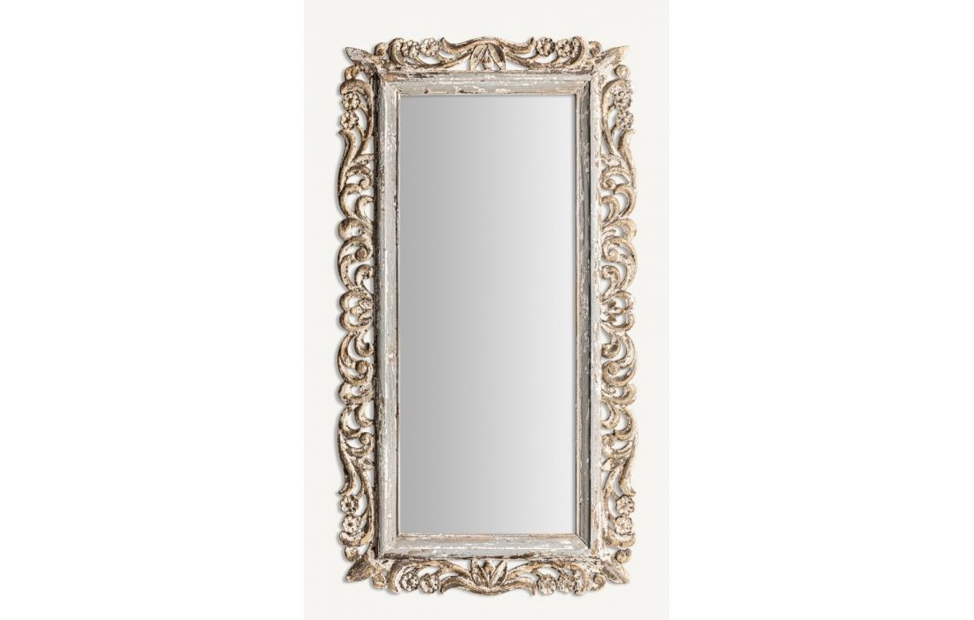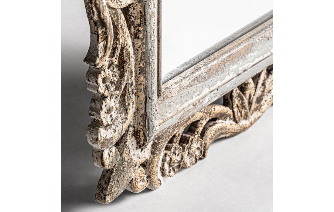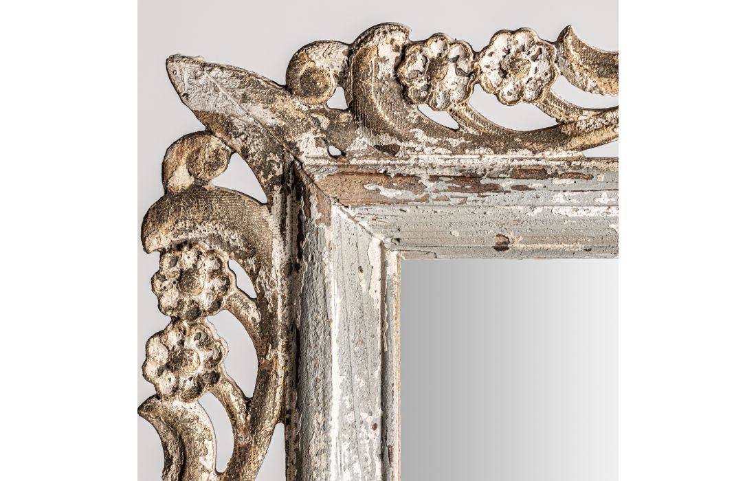 Espelho no estilo provençal feito em ferro, MDF e espelho na cor cinza e creme