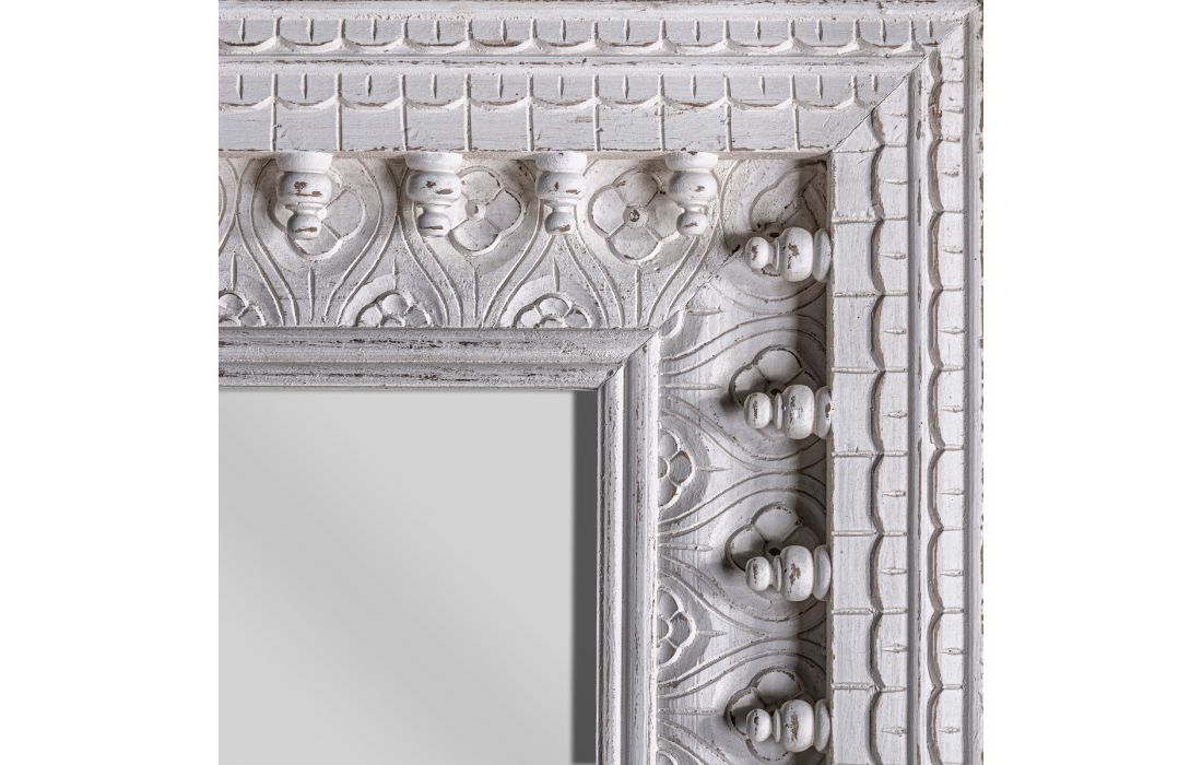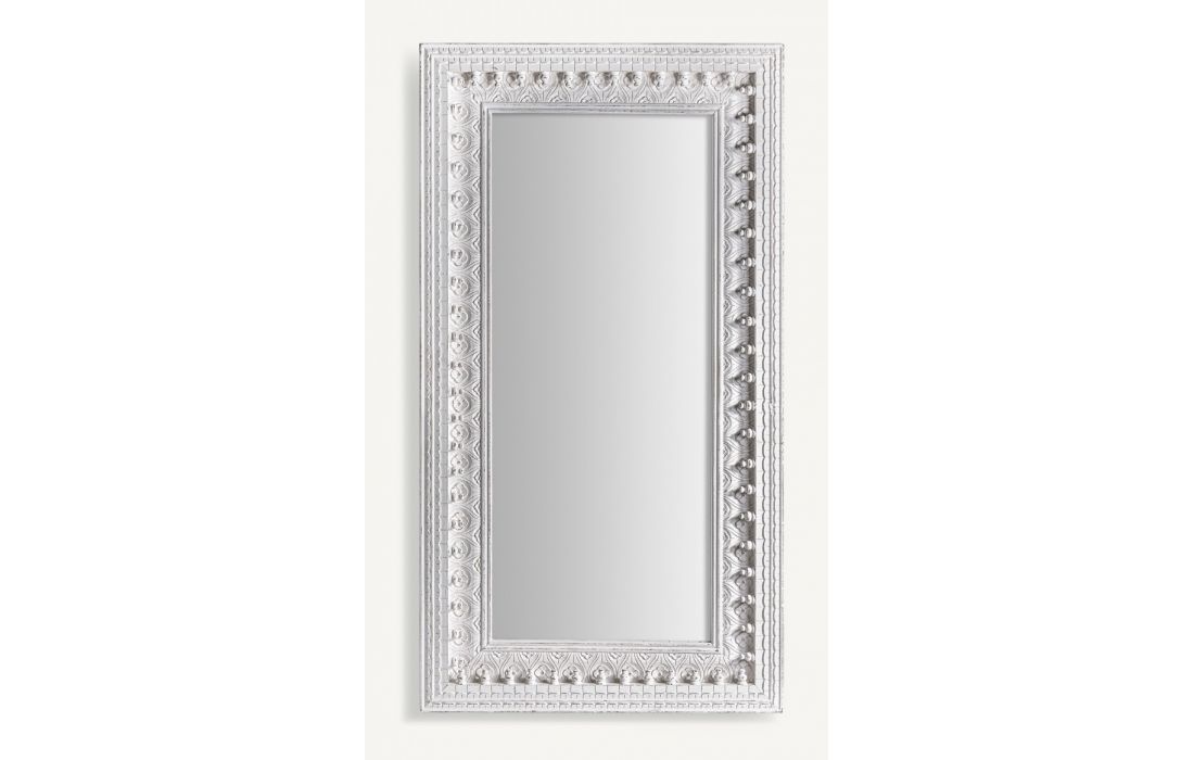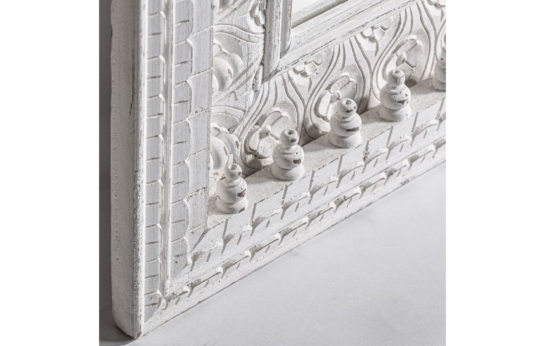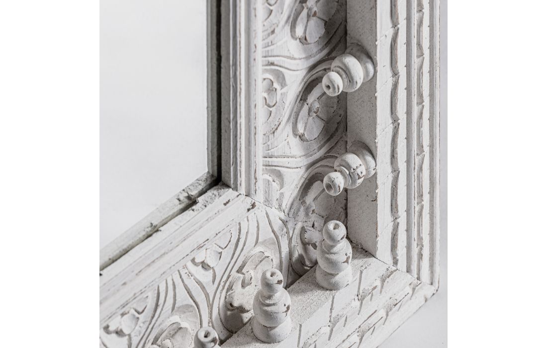 Espelho no estilo provençal feito em madeira de teca e espelho na cor branca