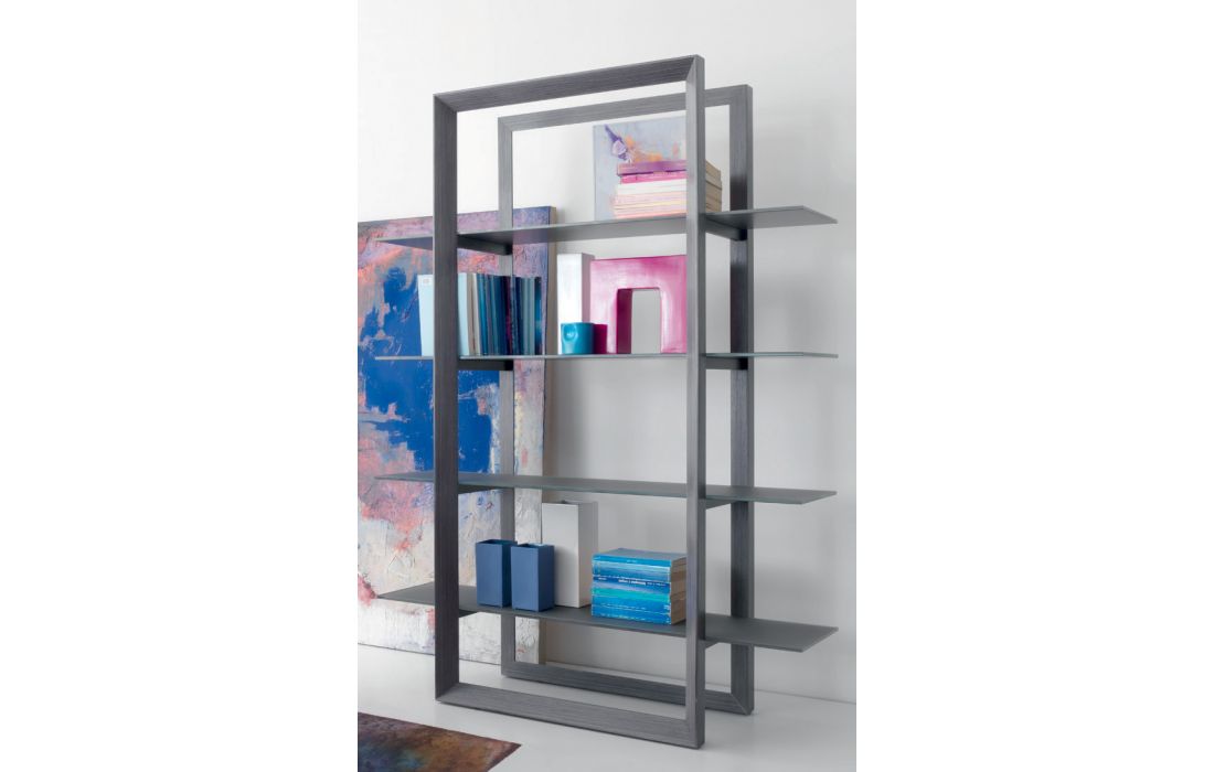 Livreiro moderno com estrutura em carvalho cinza com 4 prateleiras de vidro extraclaro cinza