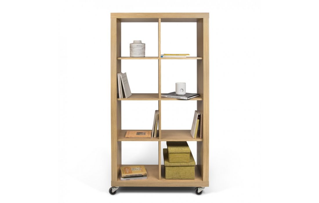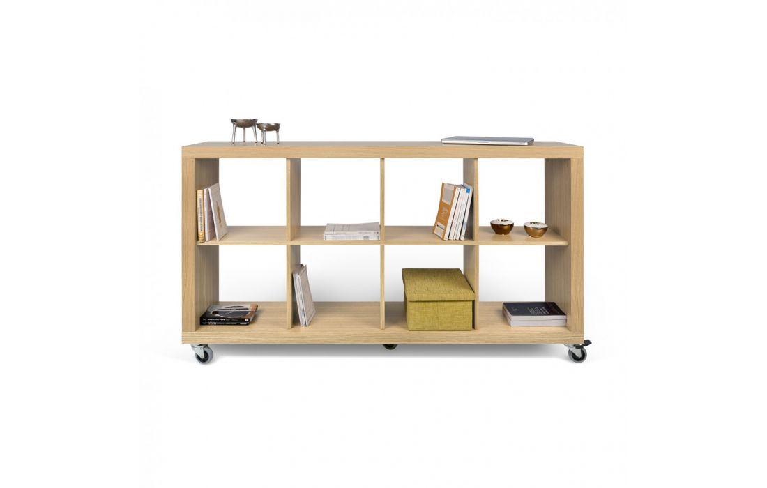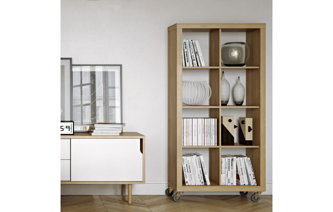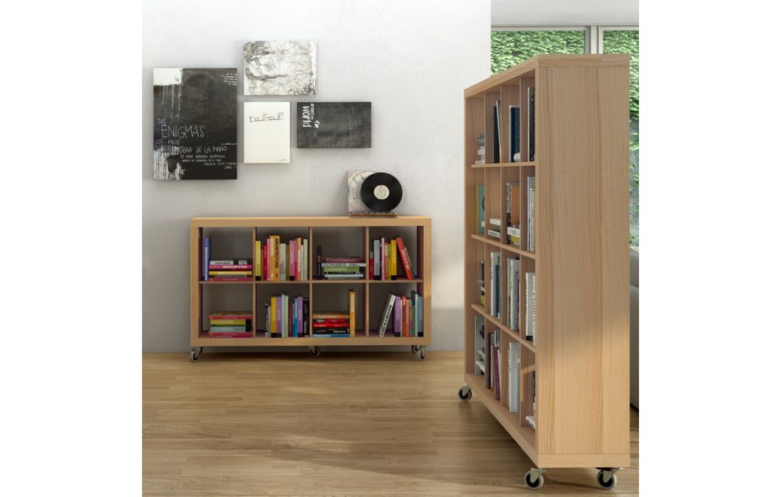 Livreiro com rodas, disponível em diferentes tamanhos.