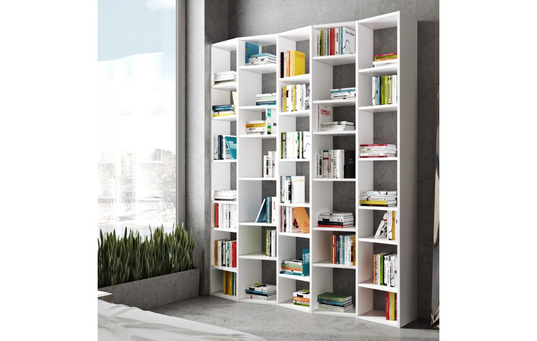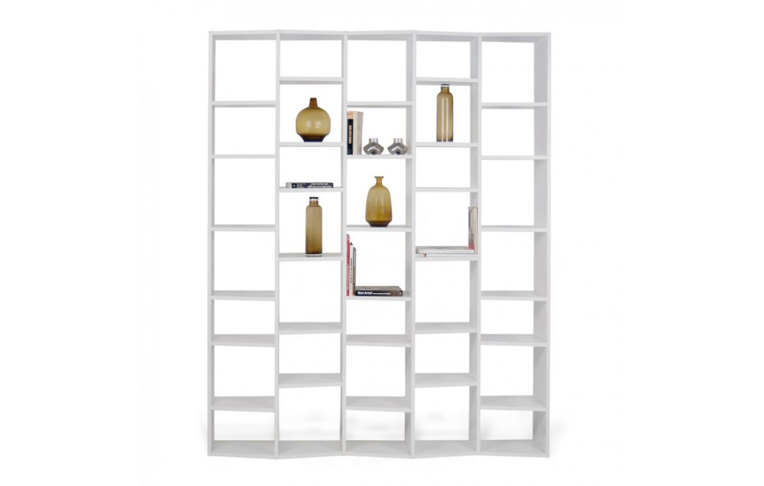 Livreiro com perfil ondulado das prateleiras introduz ritmo a qualquer divisão onde esta seja colocado.