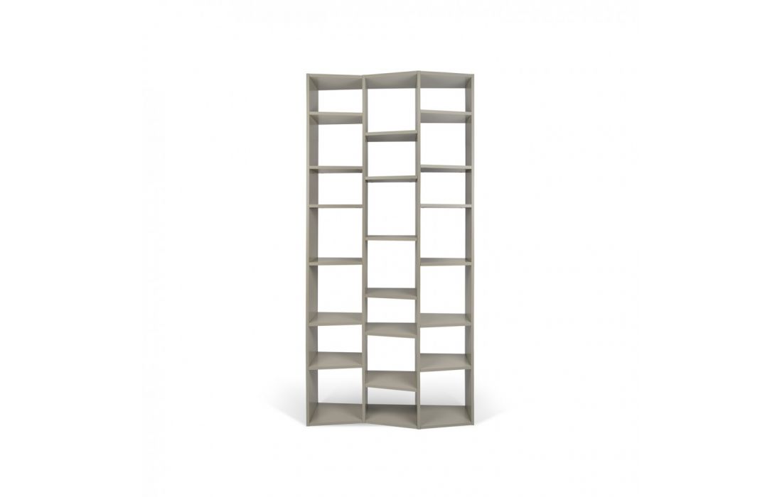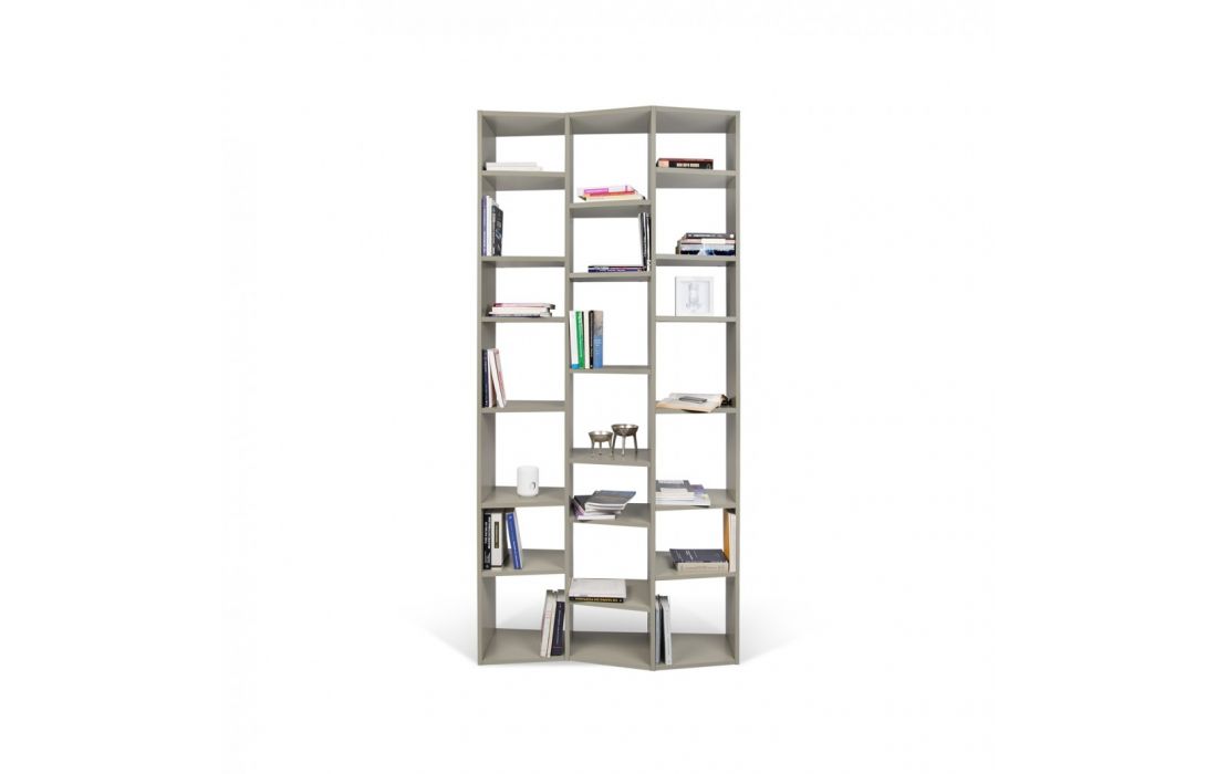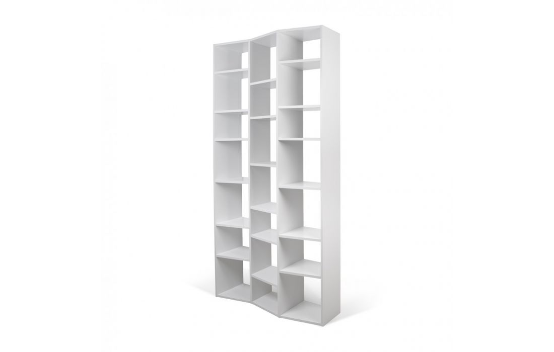 Livreiro com perfil ondulado das prateleiras introduz ritmo a qualquer divisão onde esta seja colocado.