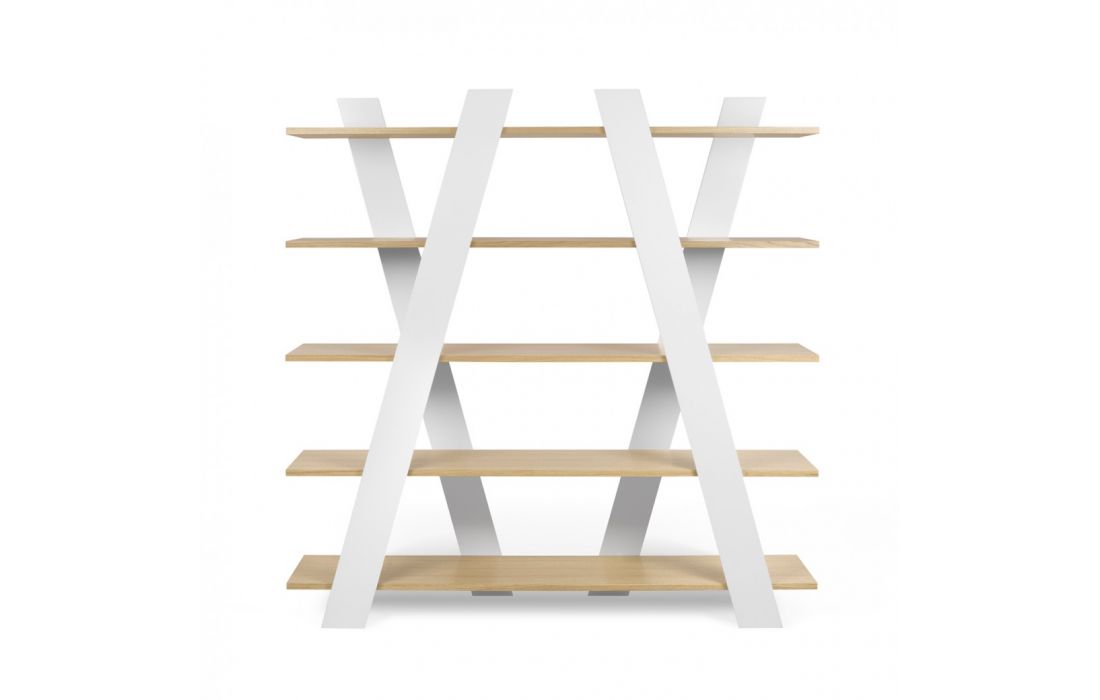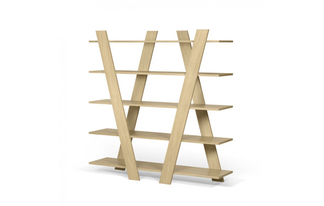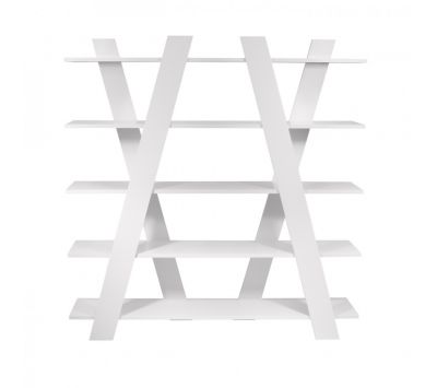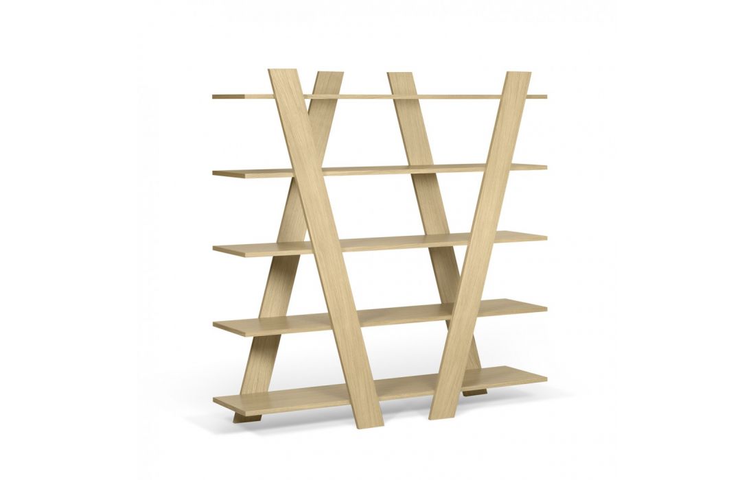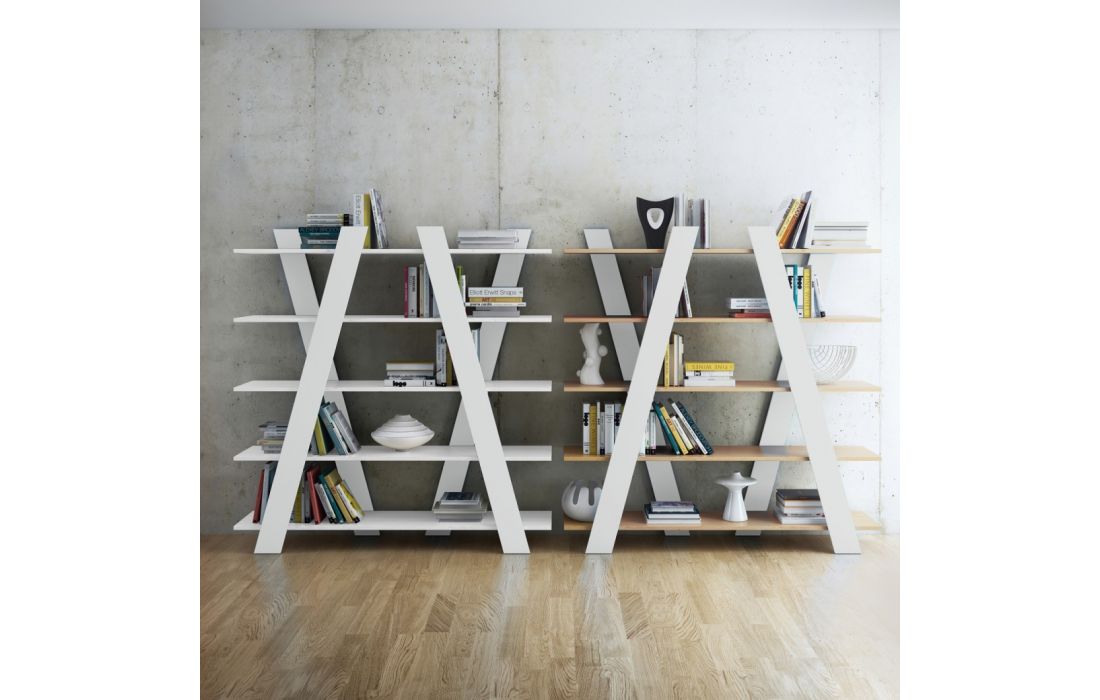 Livreiro com linhas diagonais está disponível em vários acabamentos, trazendo um toque de brilho e cor a qualquer ambiente.