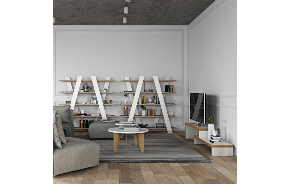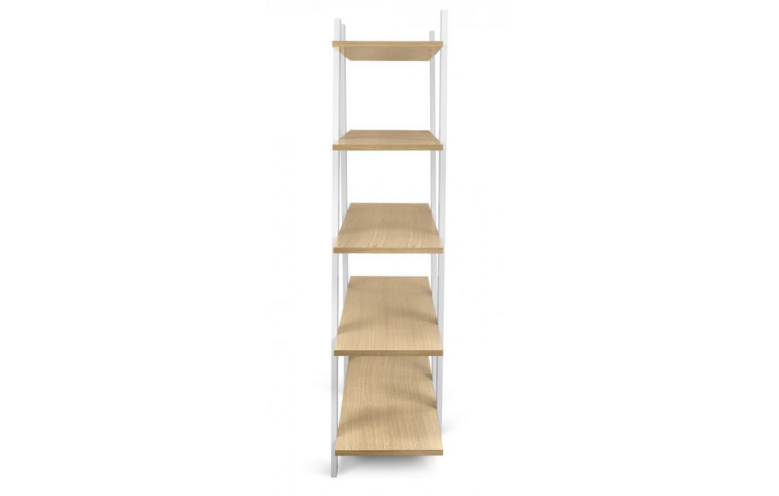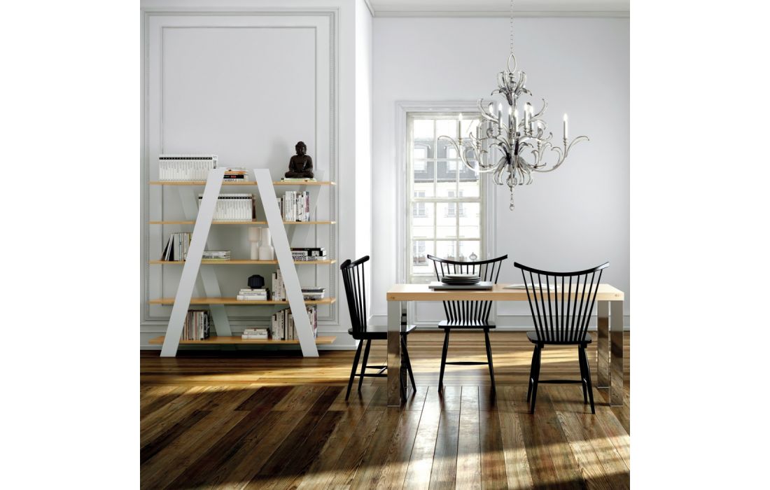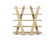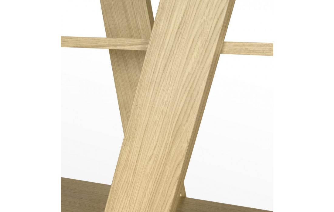 Livreiro com linhas diagonais está disponível em vários acabamentos, trazendo um toque de brilho e cor a qualquer ambiente.