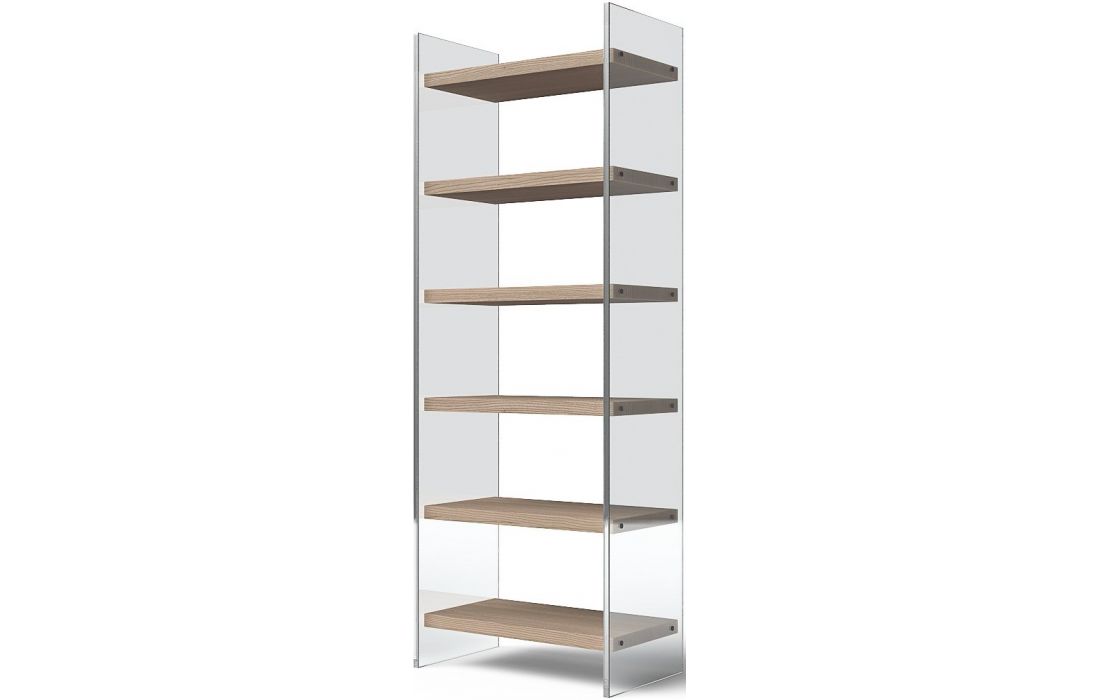 Livreiro com estrutura em vidro e prateleiras em madeiraDestinatário :