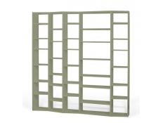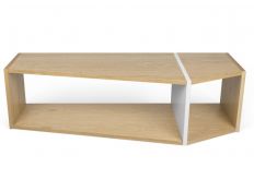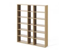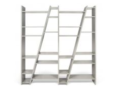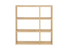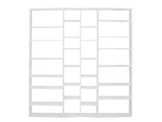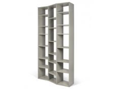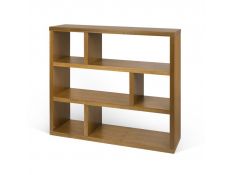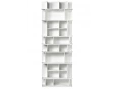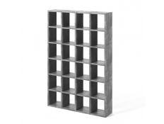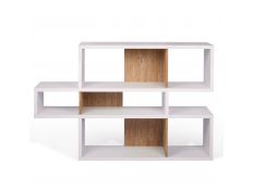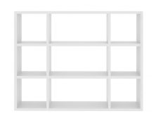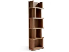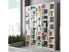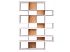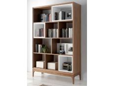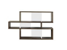 Estante simples e moderna em MDF de nogueira com cubos em MDF lacado com acabamento brilhante e detalhe em vidroDimensões em cmC 140 P 33 A 180Prazo de Entrega30 a 40 dias