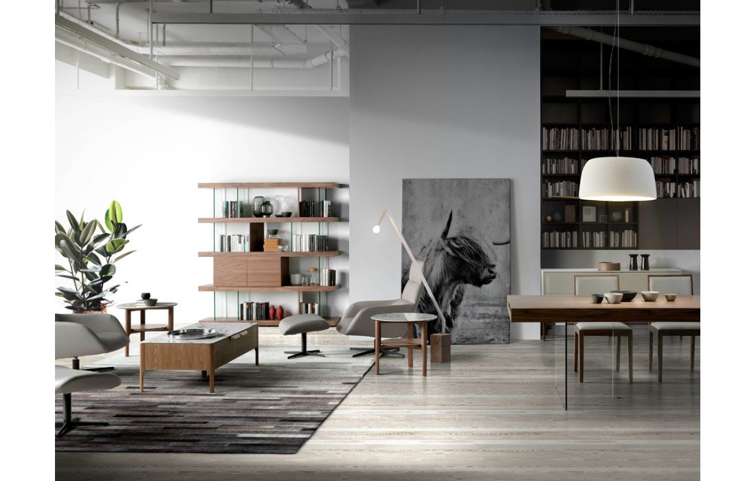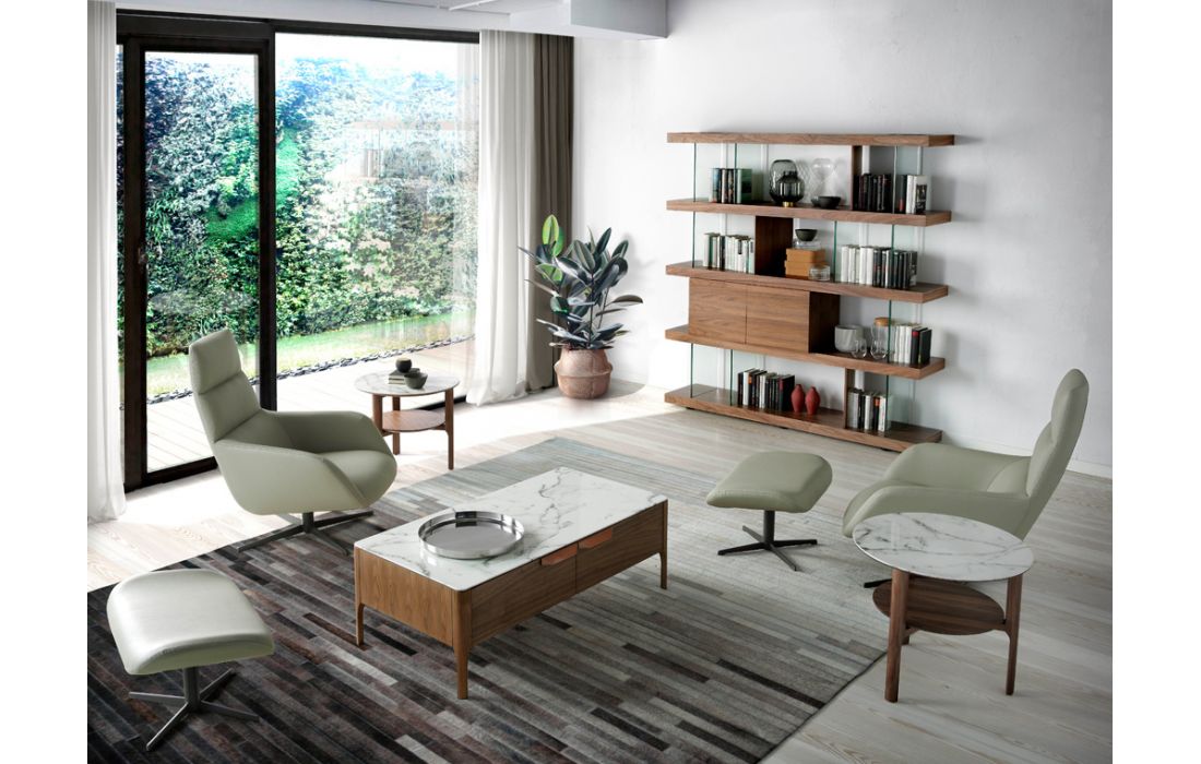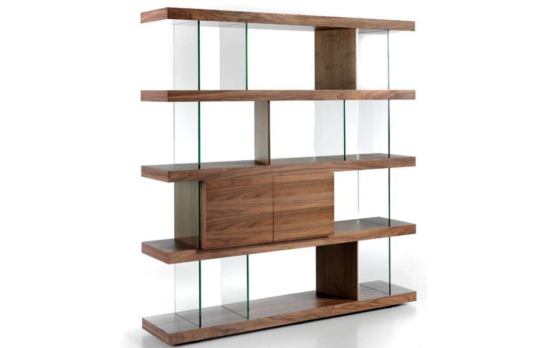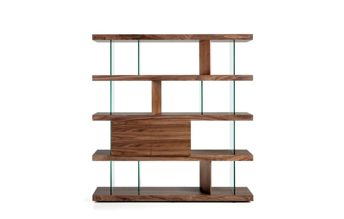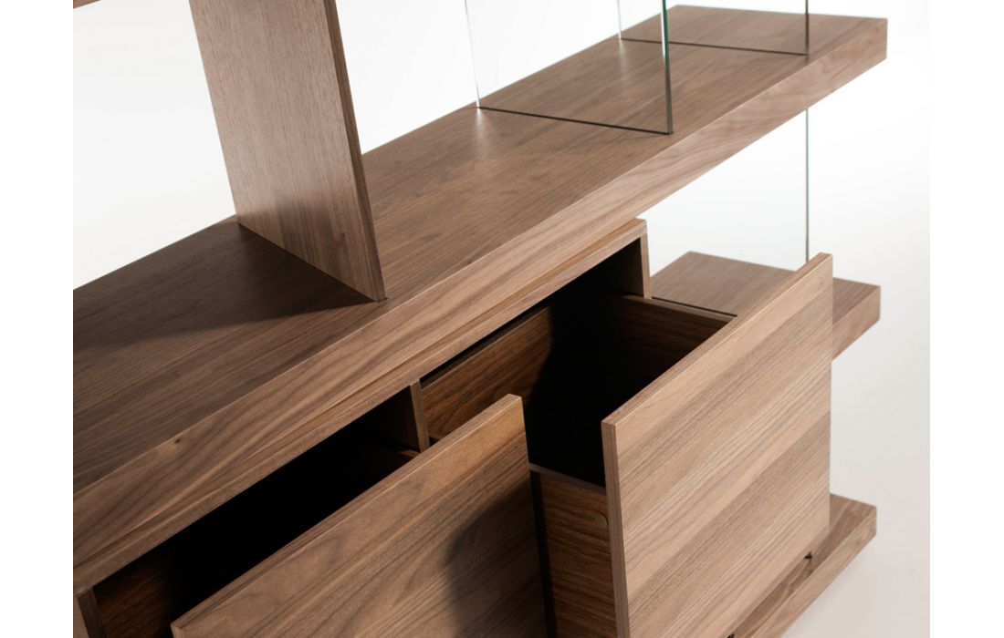 Estante MDF a nogueira com 2 gavetas com fecho suave e botão de pressão e vidroDestinatário :