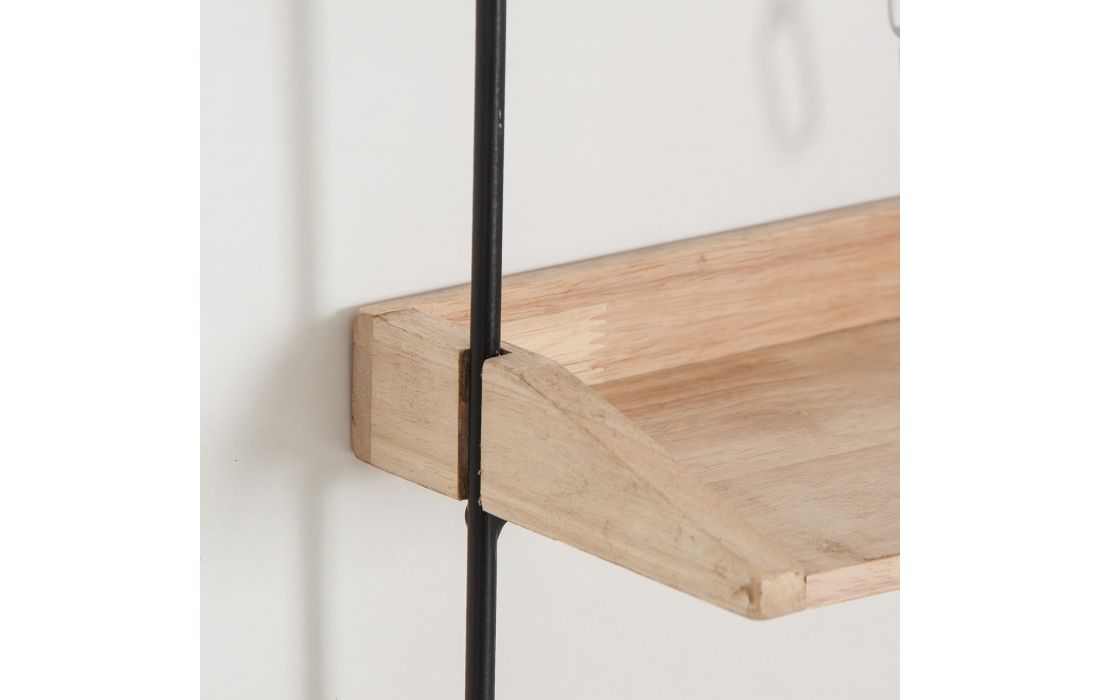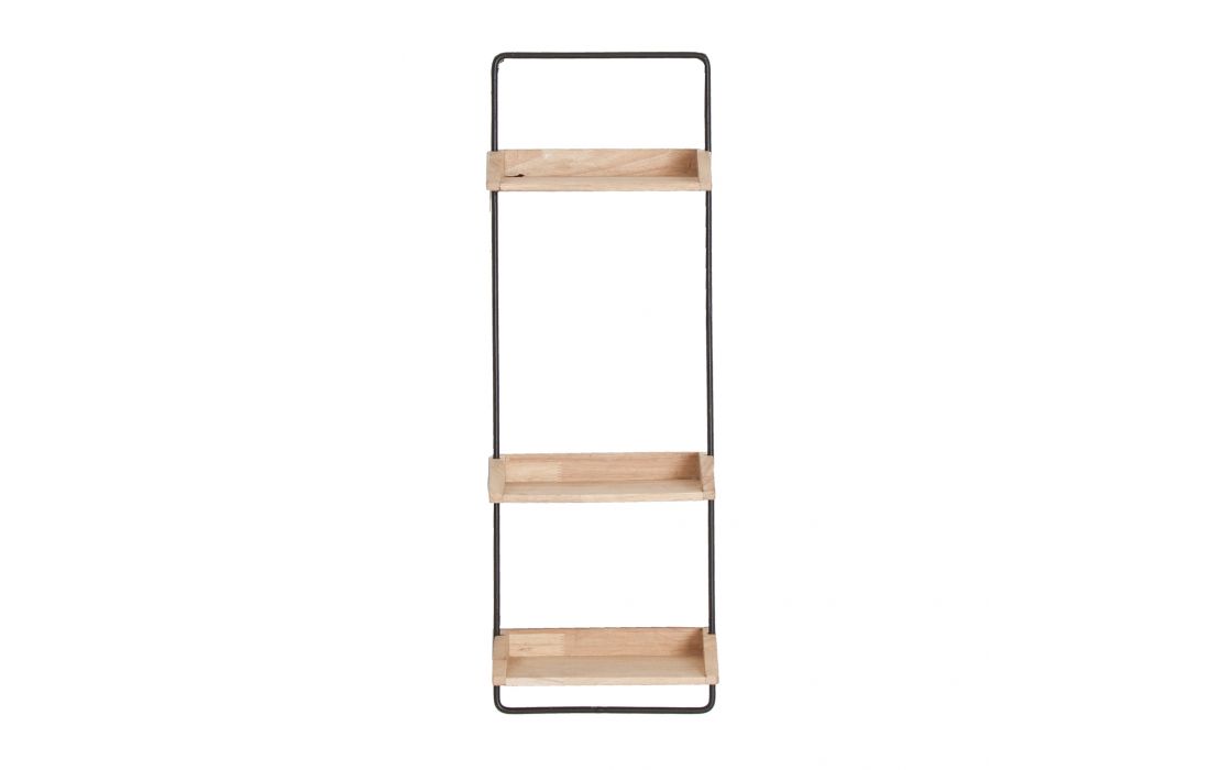 Livreiro feito em ferro com três prateleiras em madeira de abeto de cor natural.