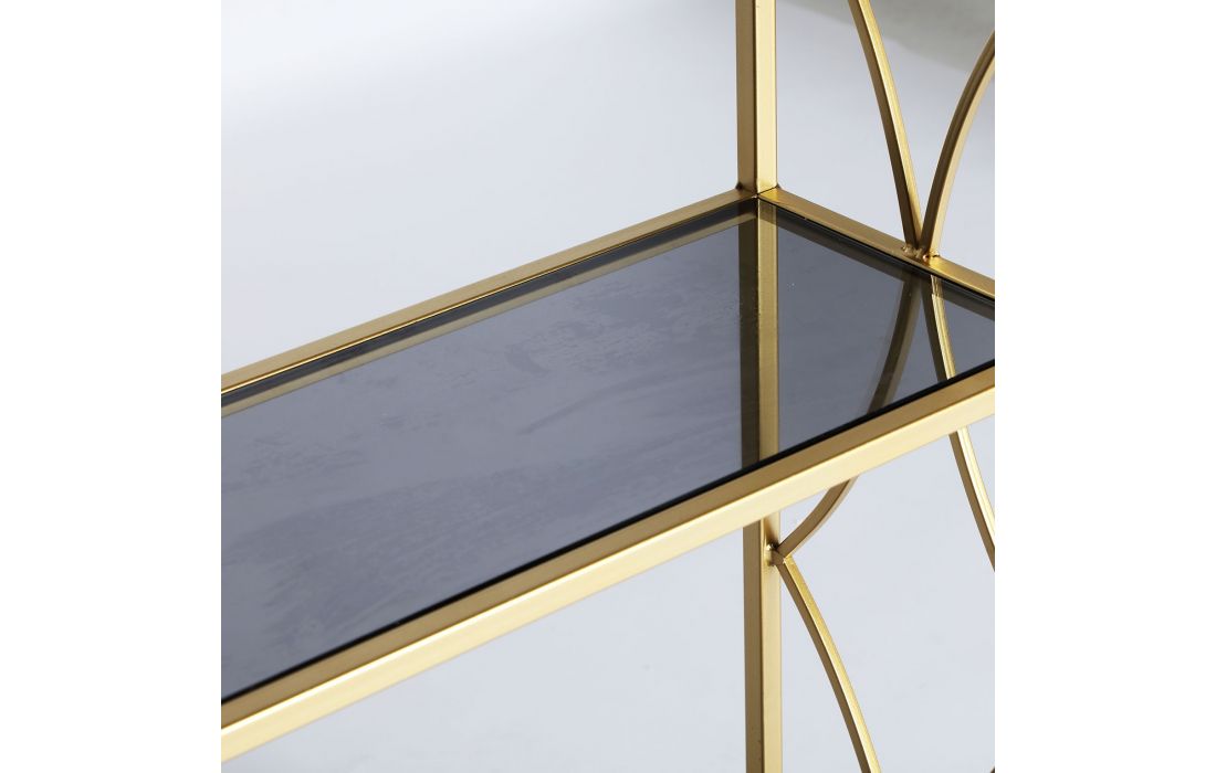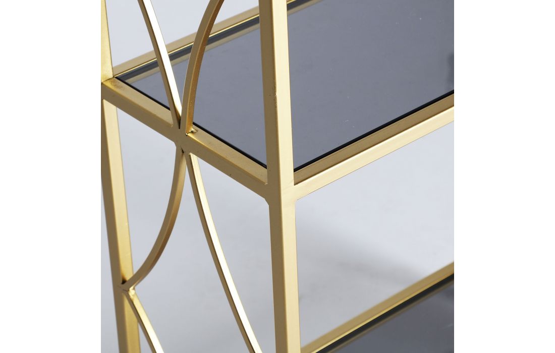 Livreiro com estrutura de ferro na cor dourado e 4 prateleiras em vidro