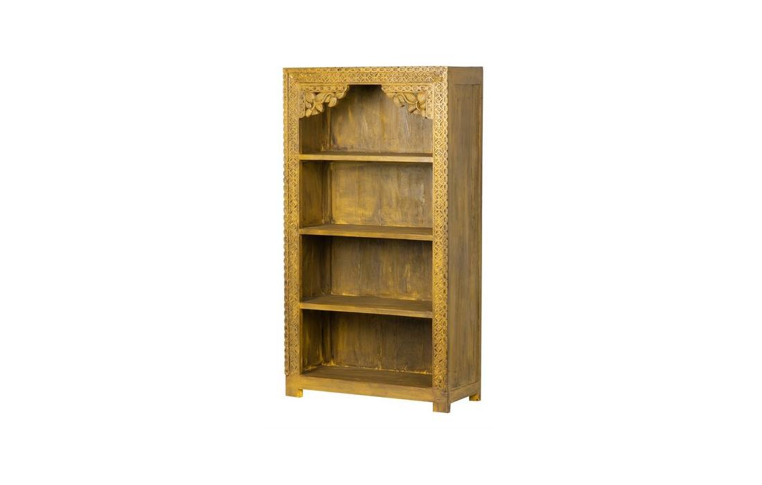 Estante em madeira de teca de cor amarela fabricada de forma artesanalDestinatário :