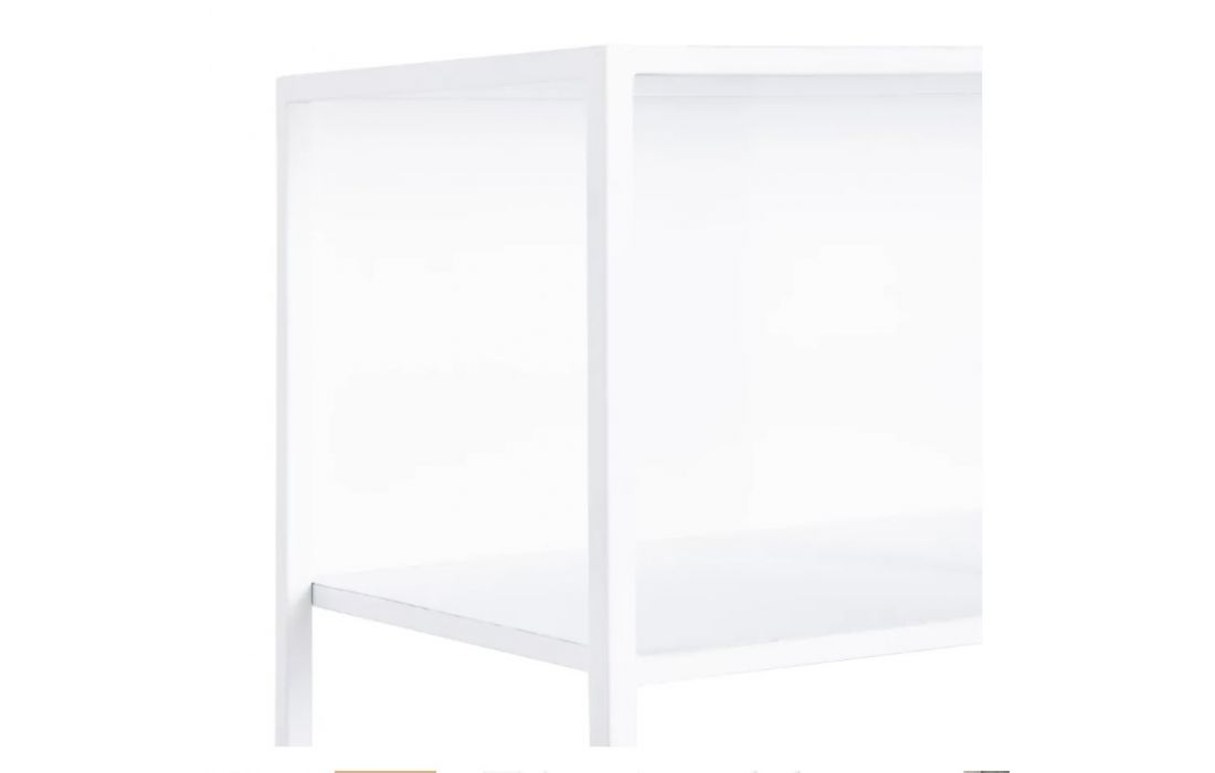 Estante simples e moderna em MDF de nogueira com cubos em MDF lacado com acabamento brilhante e detalhe em vidroDimensões em cmC 140 P 33 A 180Prazo de Entrega30 a 40 dias
