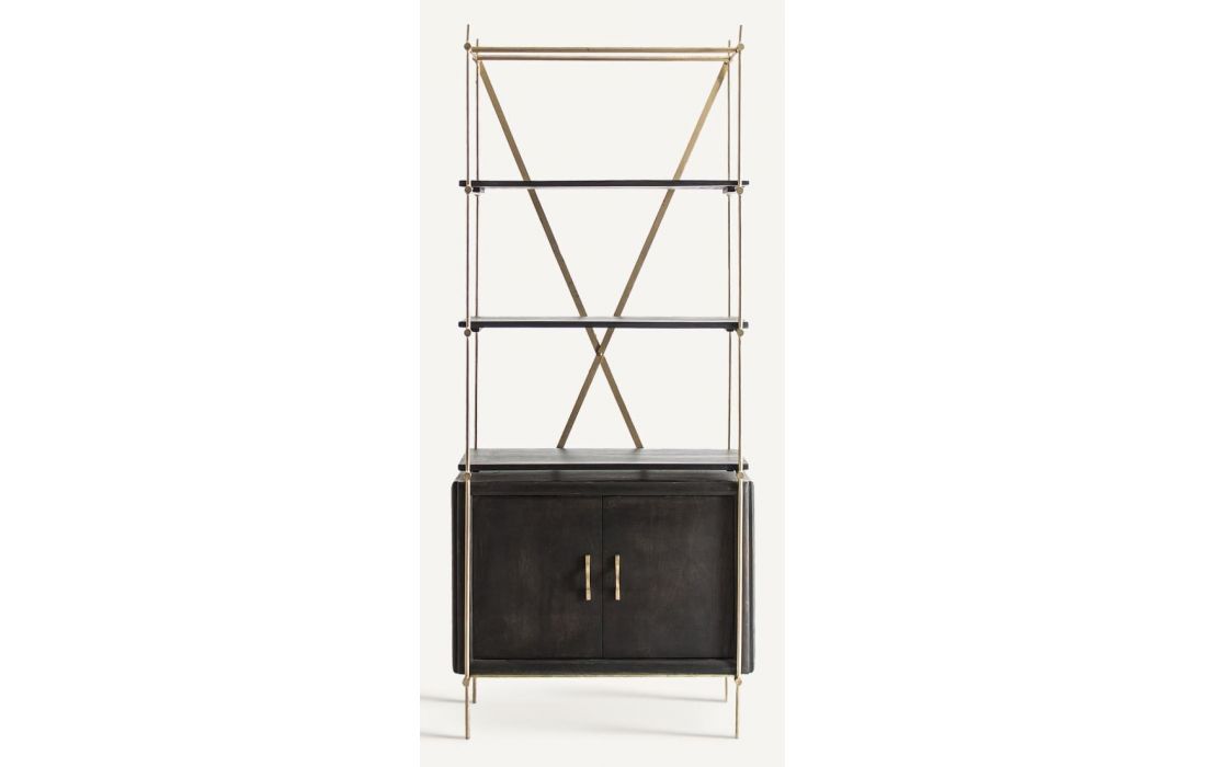 Estante simples e moderna em MDF de nogueira com cubos em MDF lacado com acabamento brilhante e detalhe em vidroDimensões em cmC 140 P 33 A 180Prazo de Entrega30 a 40 dias