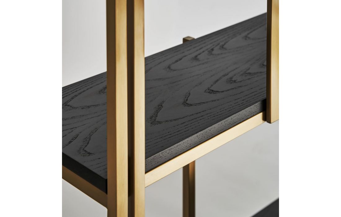 Estante simples e moderna em MDF de nogueira com cubos em MDF lacado com acabamento brilhante e detalhe em vidroDimensões em cmC 140 P 33 A 180Prazo de Entrega30 a 40 dias