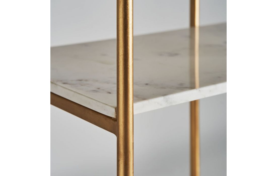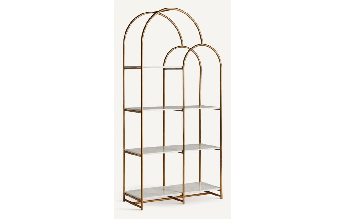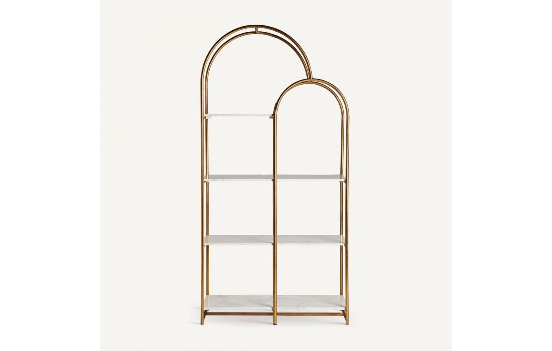 Estante com estrutura em ferro dourado com prateleiras em mármore na cor branca.Destinatário :
