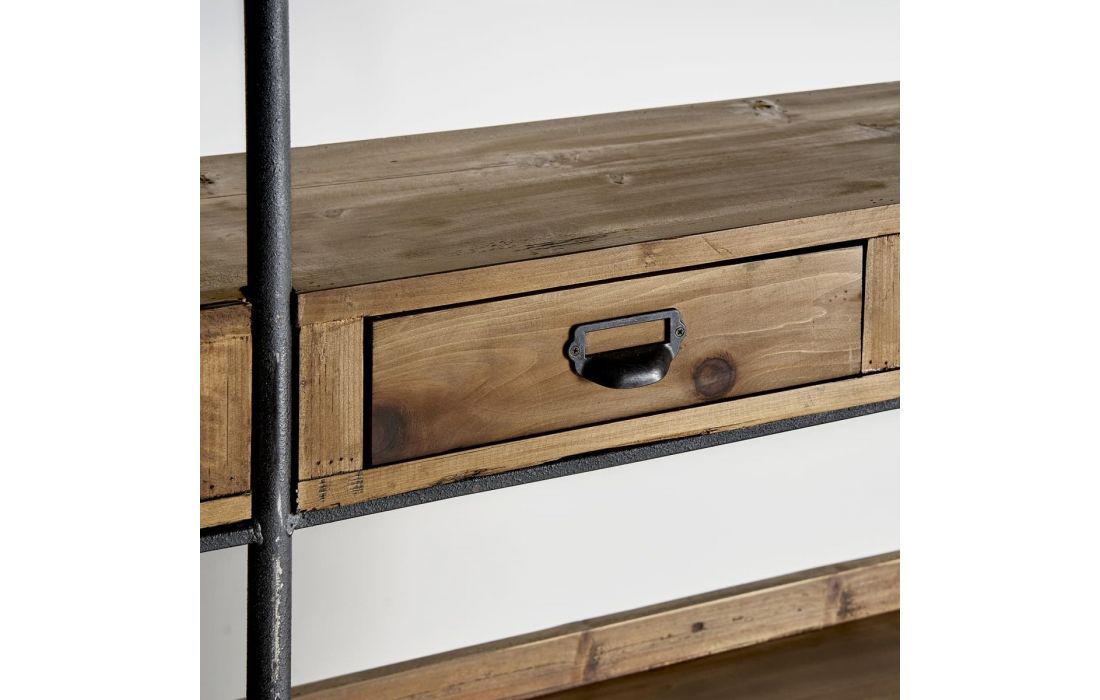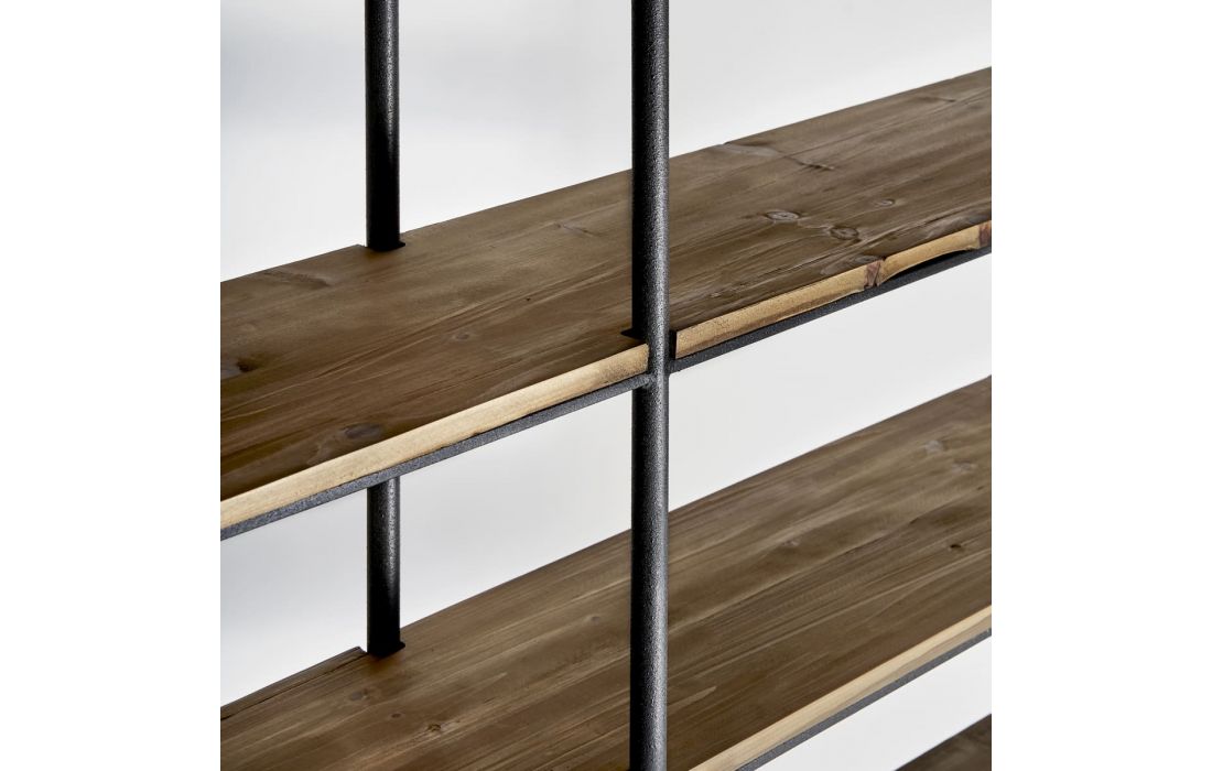 Estante em madeira de teca na cor castanha com detalhes em ferroDestinatário :