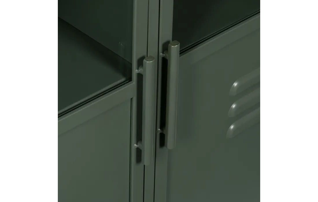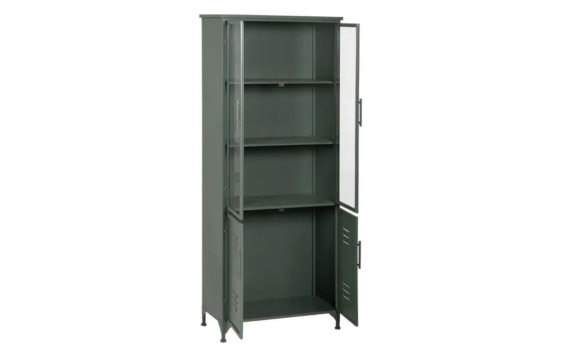 Estante com estrutura em metal combinado com ferro e vidro.Destinatário :