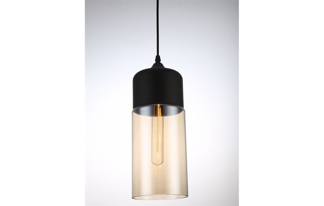 Candeeiro de teto moderno em metal preto e vidro preto cogñac.