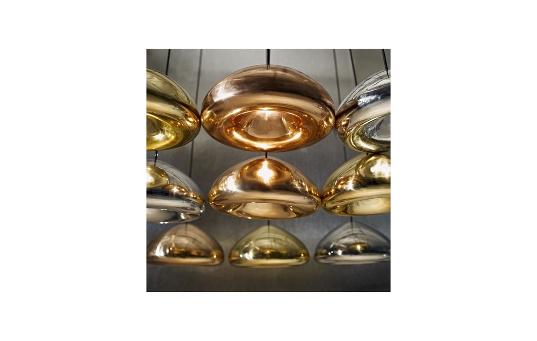 Candeeiro de teto em vidro de cor dourado, prateado ou bronze.