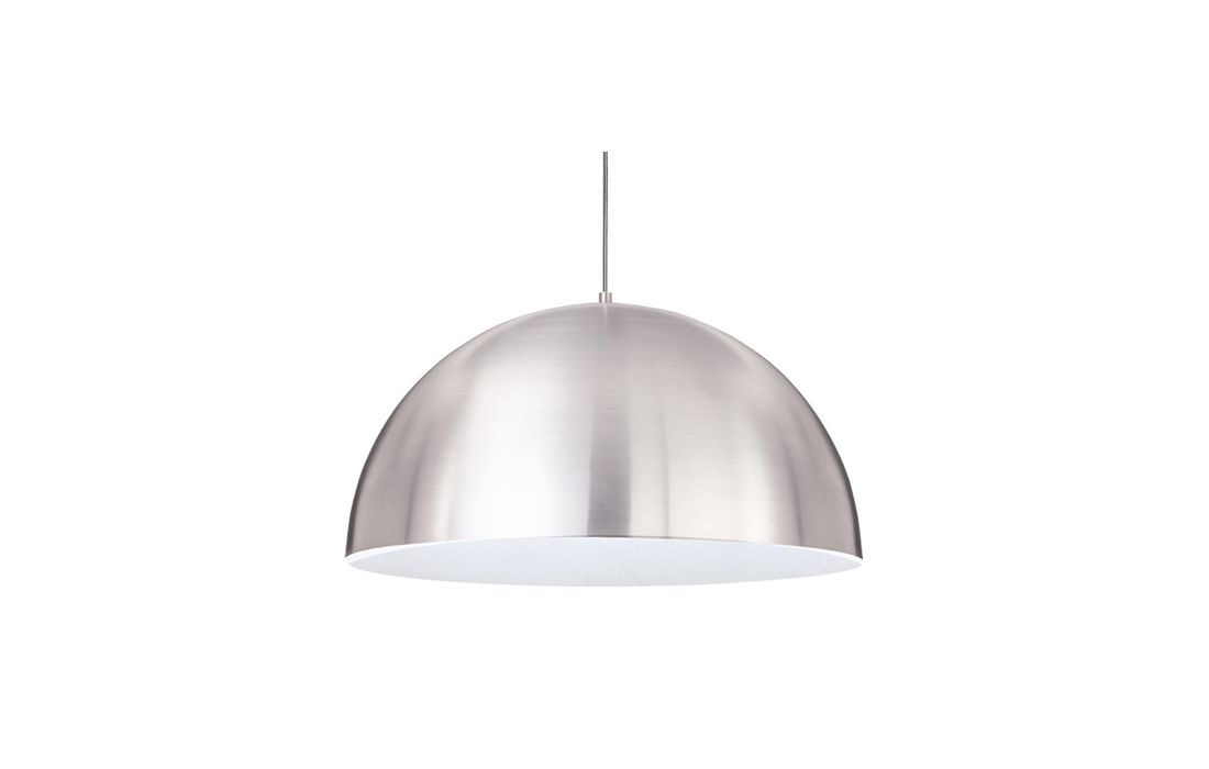 Candeeiro de teto em alumínio com parte interior de cor branco ou laranja.