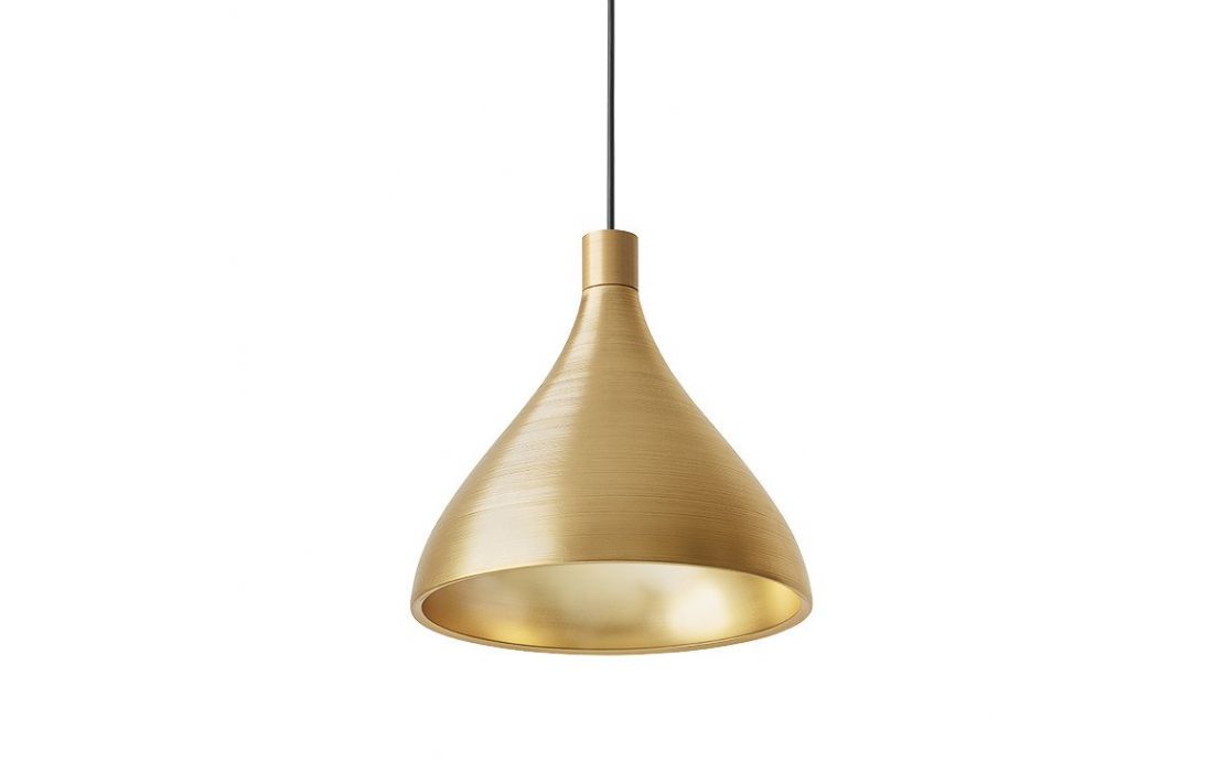 Candeeiro de teto com estrutura em metal branco, preto ou dourado, interior em dourado.