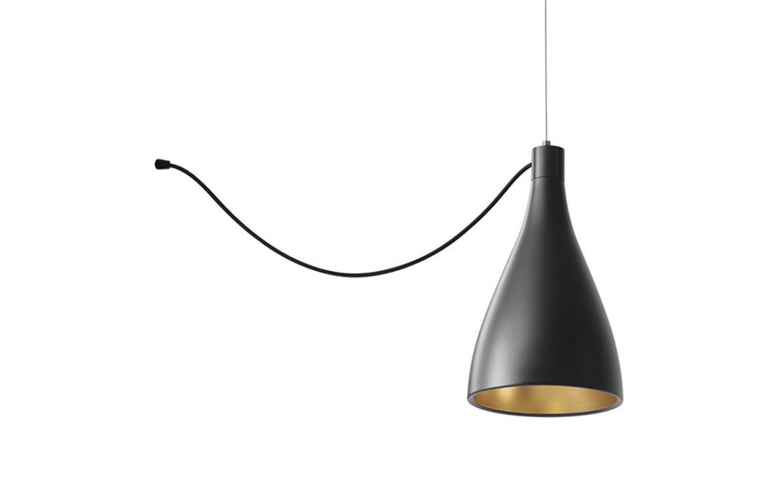 Candeeiro de teto com estrutura em metal branco, preto ou dourado, interior em dourado.