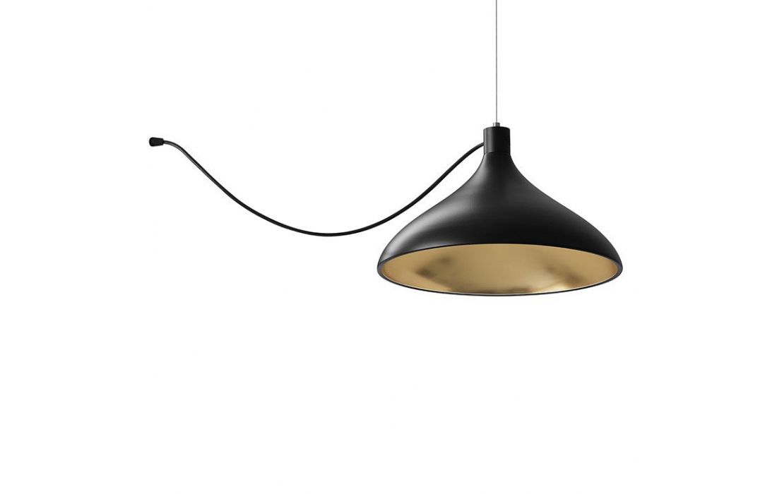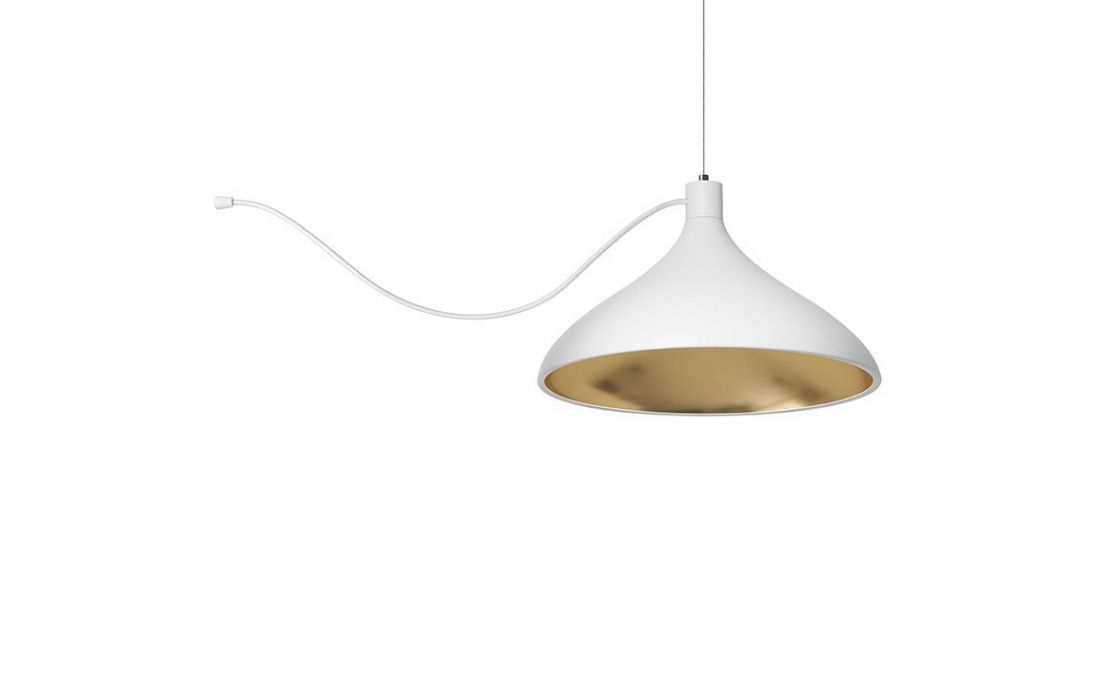 Candeeiro de teto com estrutura em metal branco, preto ou dourado, interior em dourado.