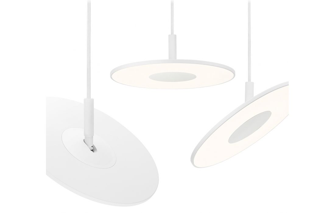 Candeeiro de teto com estrutura em metal branco ou metal grafite.