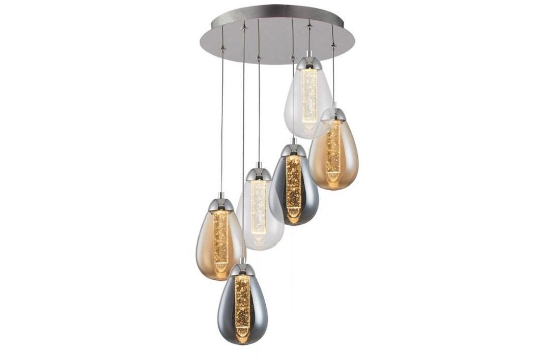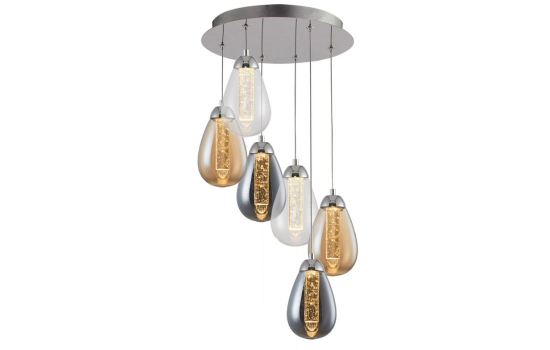 Candeeiro de 6 luzes LED regulável em metal, acabamento crómio.
