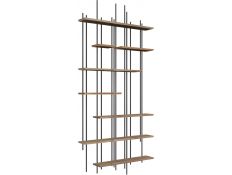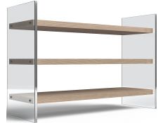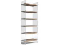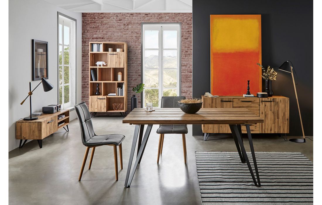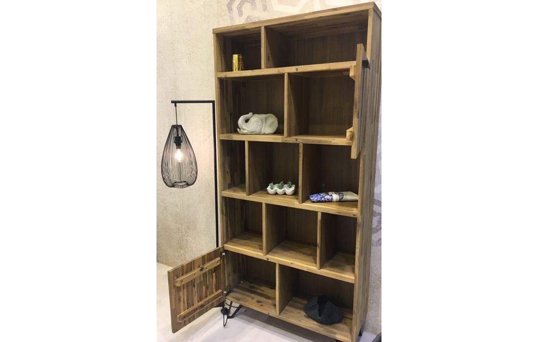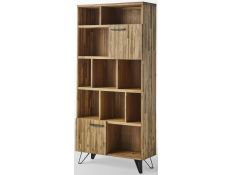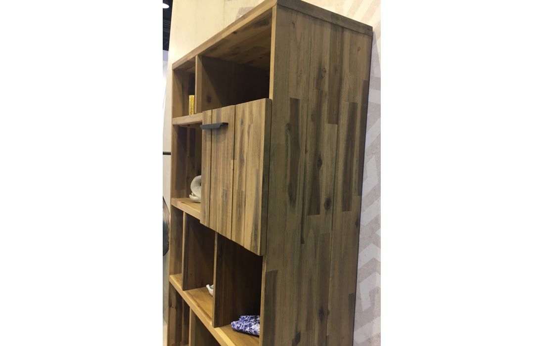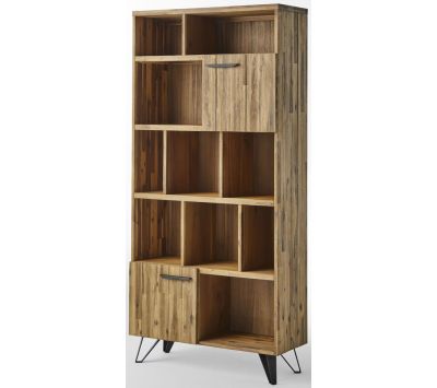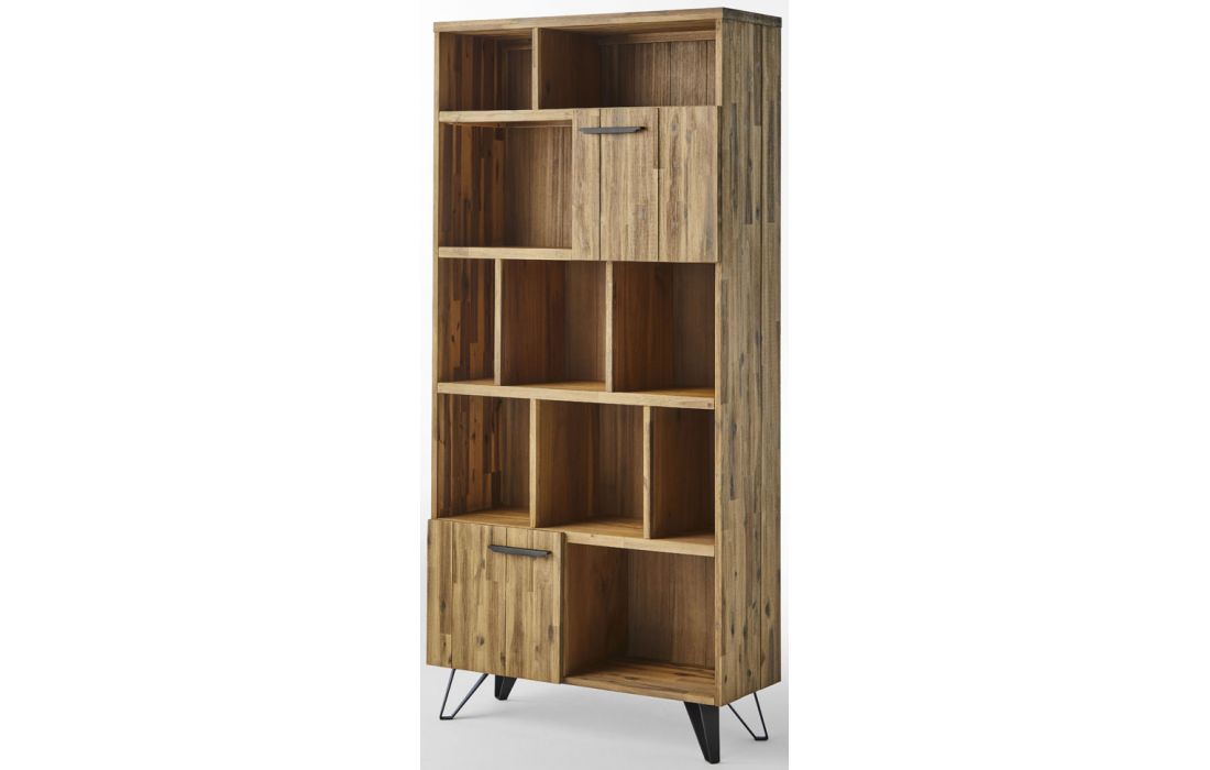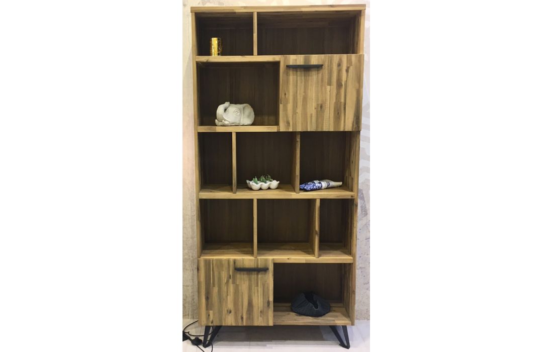 Estante Livreira em madeira maçica de acácia com pés em metal preto.