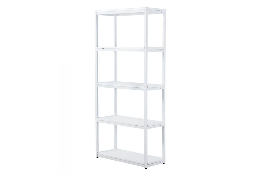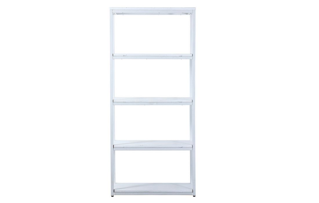 Livreiro em madeira de olmo reciclada com pés em metal branco