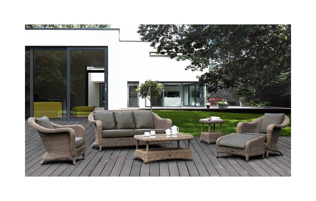 Mesa de apoio em rattan grey kubu com tampo em vidro,