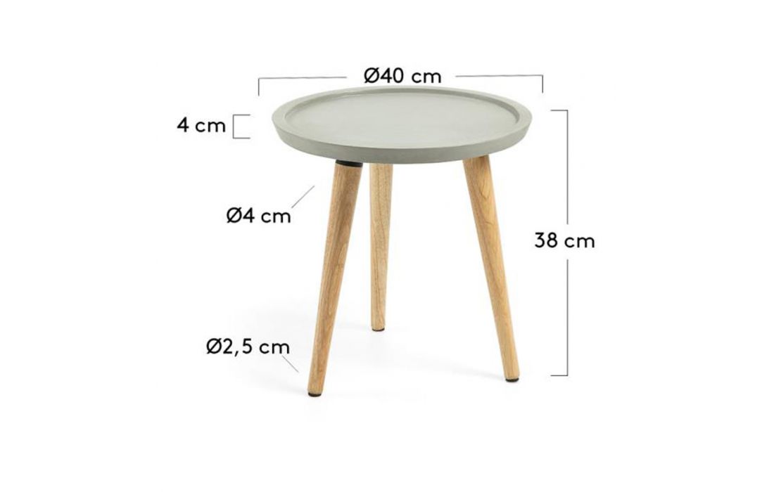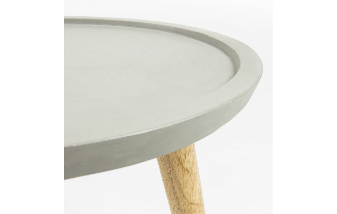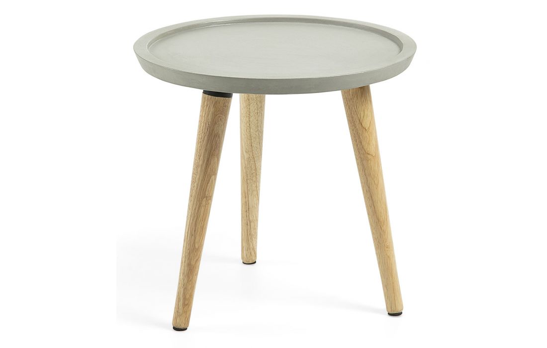 Mesa de apoio com tampo em cimento, pés de madeira, para uso interior e exterior.Destinatário :