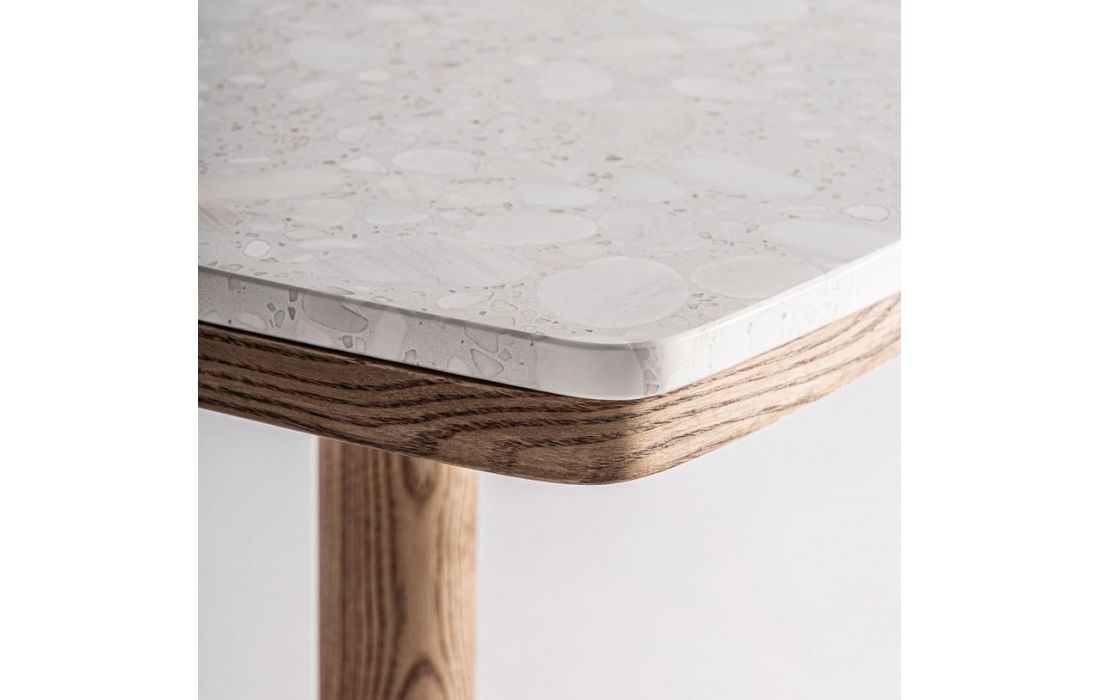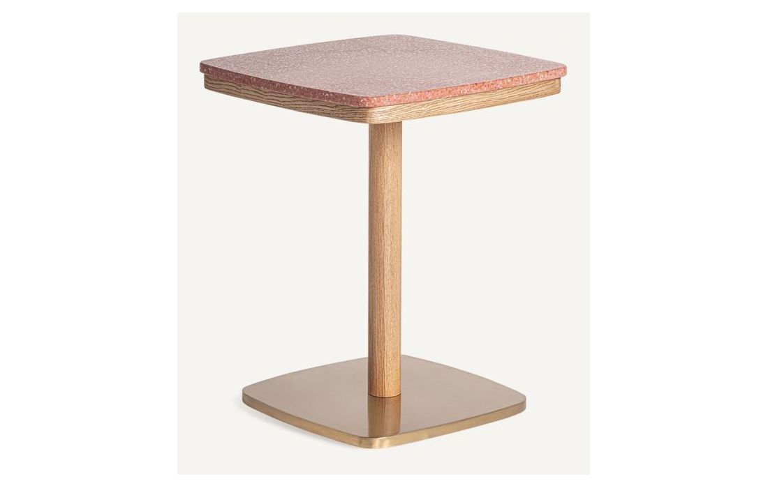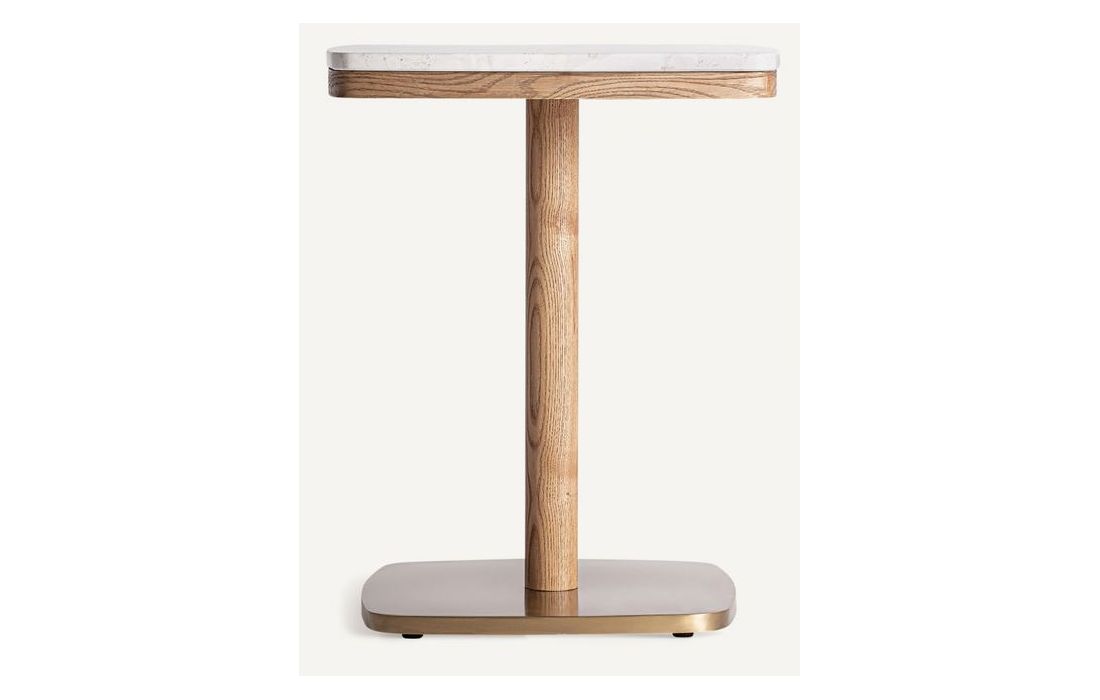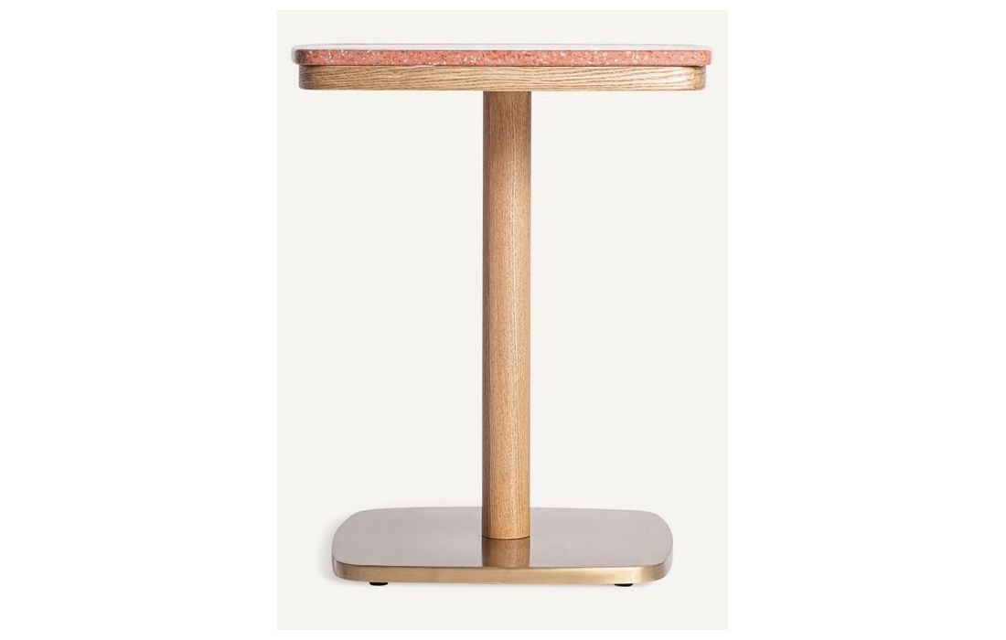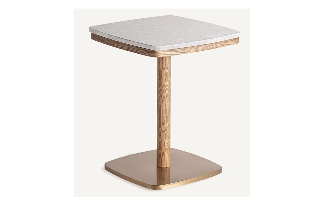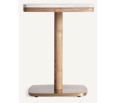 Mesa de bar em aço e madeira e superfície em mármore branca ou vermelhaDimensões em cm